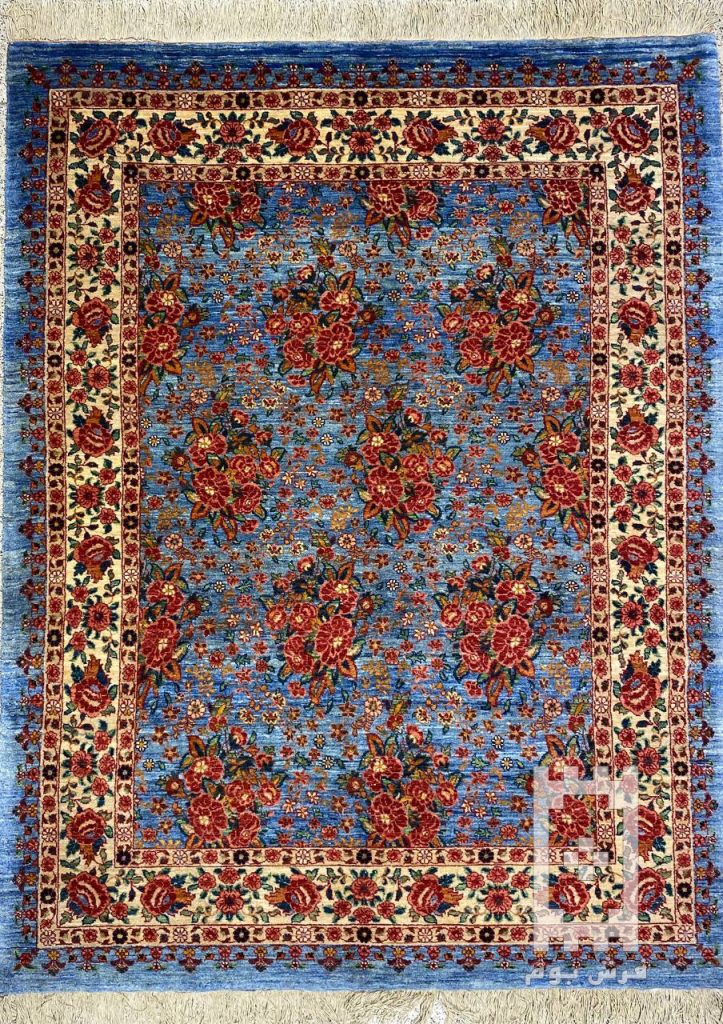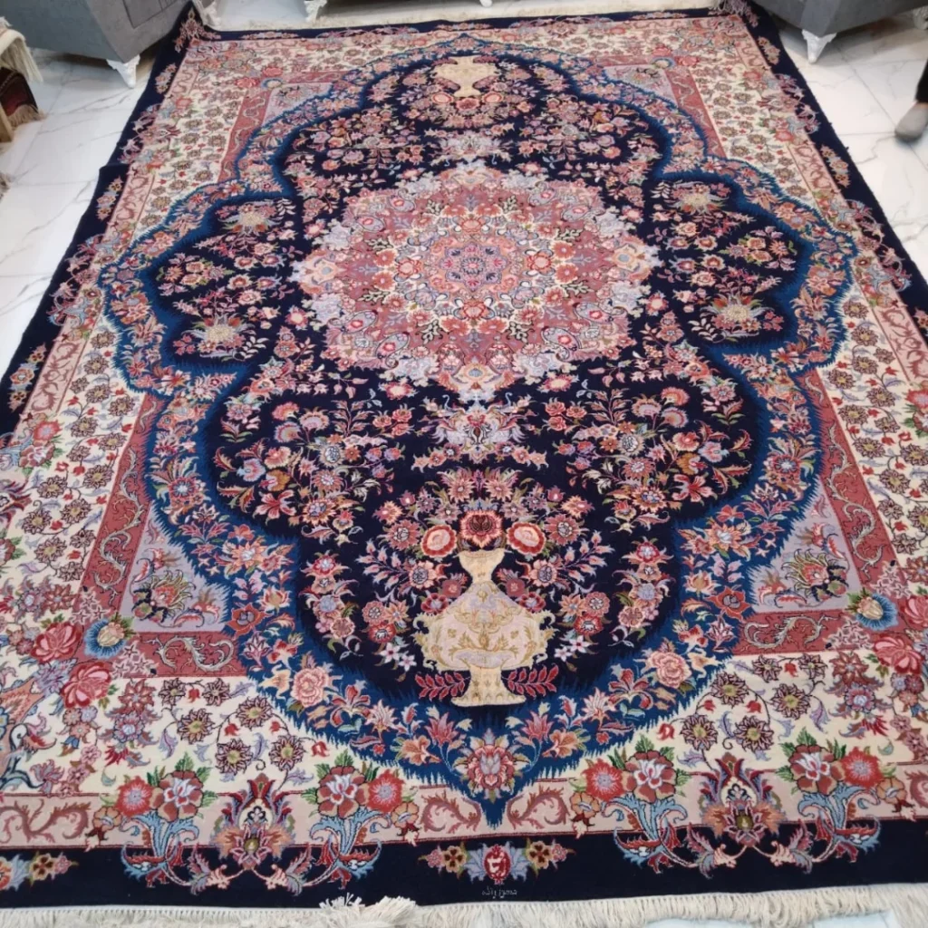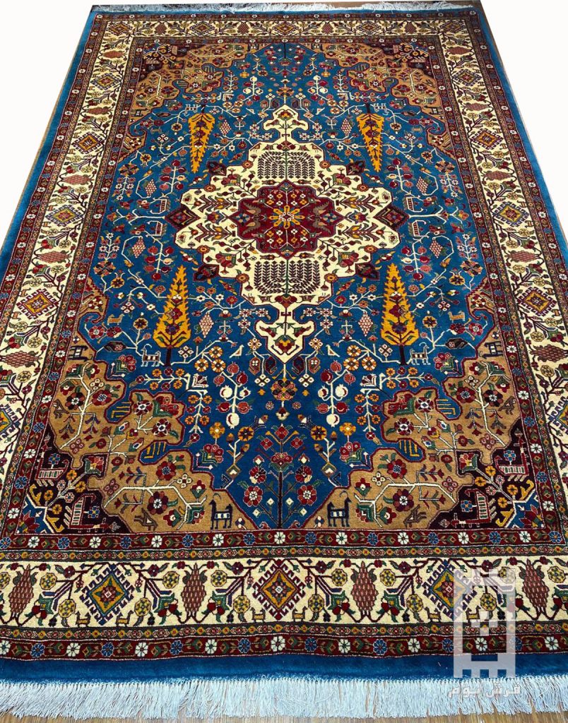 فرش دستباف شش متری تبریز (نقشه لچک ترنج آبی)