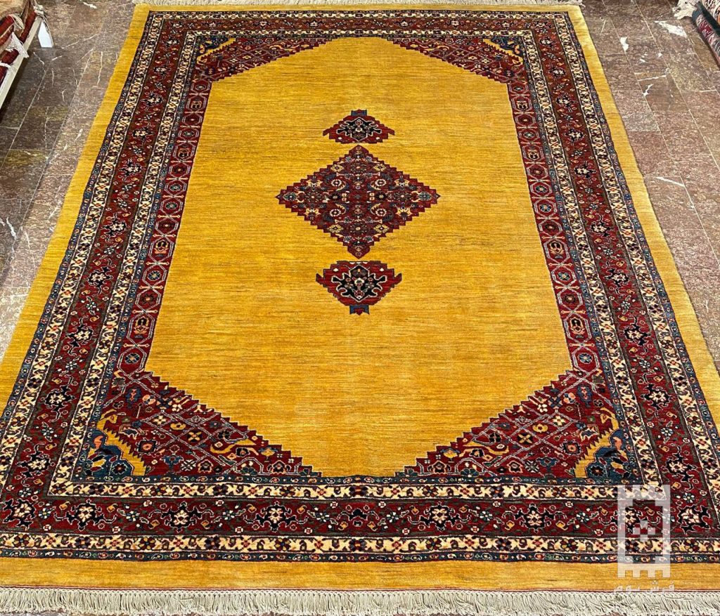 فرش دستباف قالیچه ترکمن (نقشه کف ساده زرد)