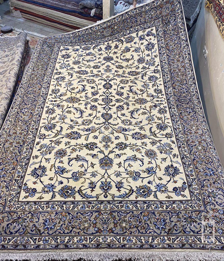 فرش دستباف قالیچه کاشان (نقشه لچک ترنج کرم)