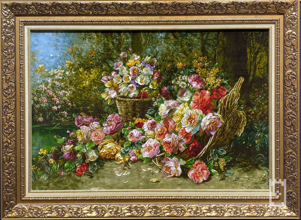 تابلو فرش دستباف پشتی تبریز (نقشه گلدانی الوان)
