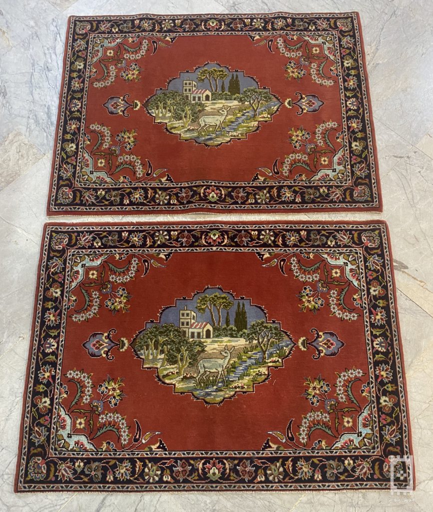 جفت قالیچه کاشان اکبند گل ابریشم