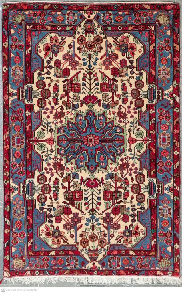 فرش دستباف قالیچه خراسان (نقشه ترنج دار آبی)