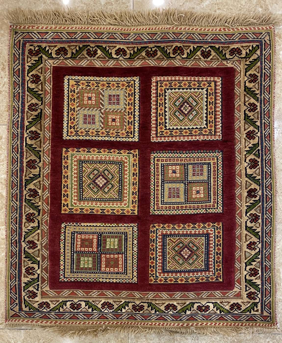 گلیم فرش دستباف پشتی سیرجان (نقشه خشتی لاکی)