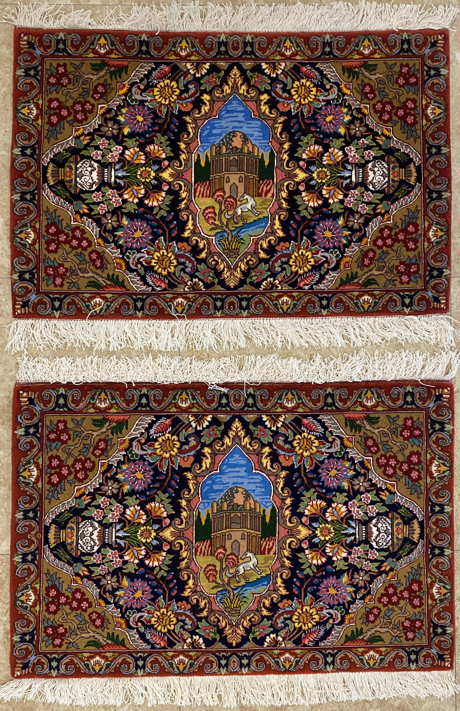 فرش دستباف جفت ذرع و چارک کاشان (نقشه لچک ترنج سرمهای)