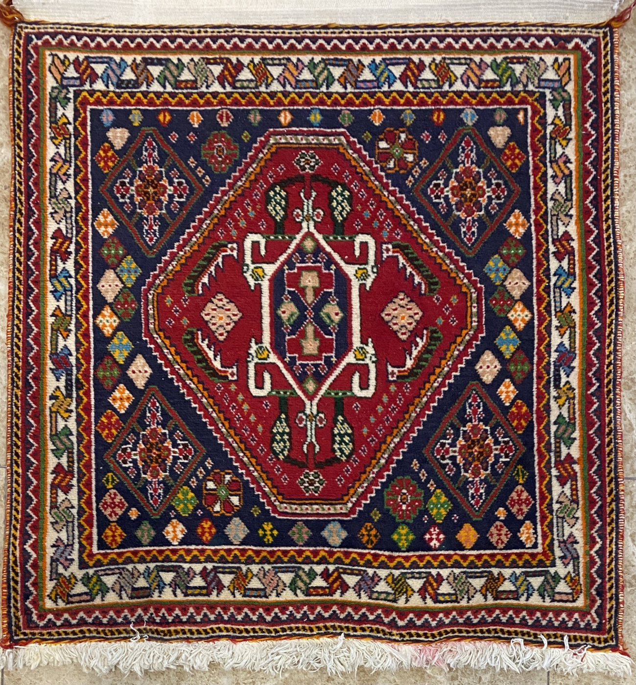 فرش دستباف جفت پشتی شیراز (نقشه ترنج دار سرمهای)