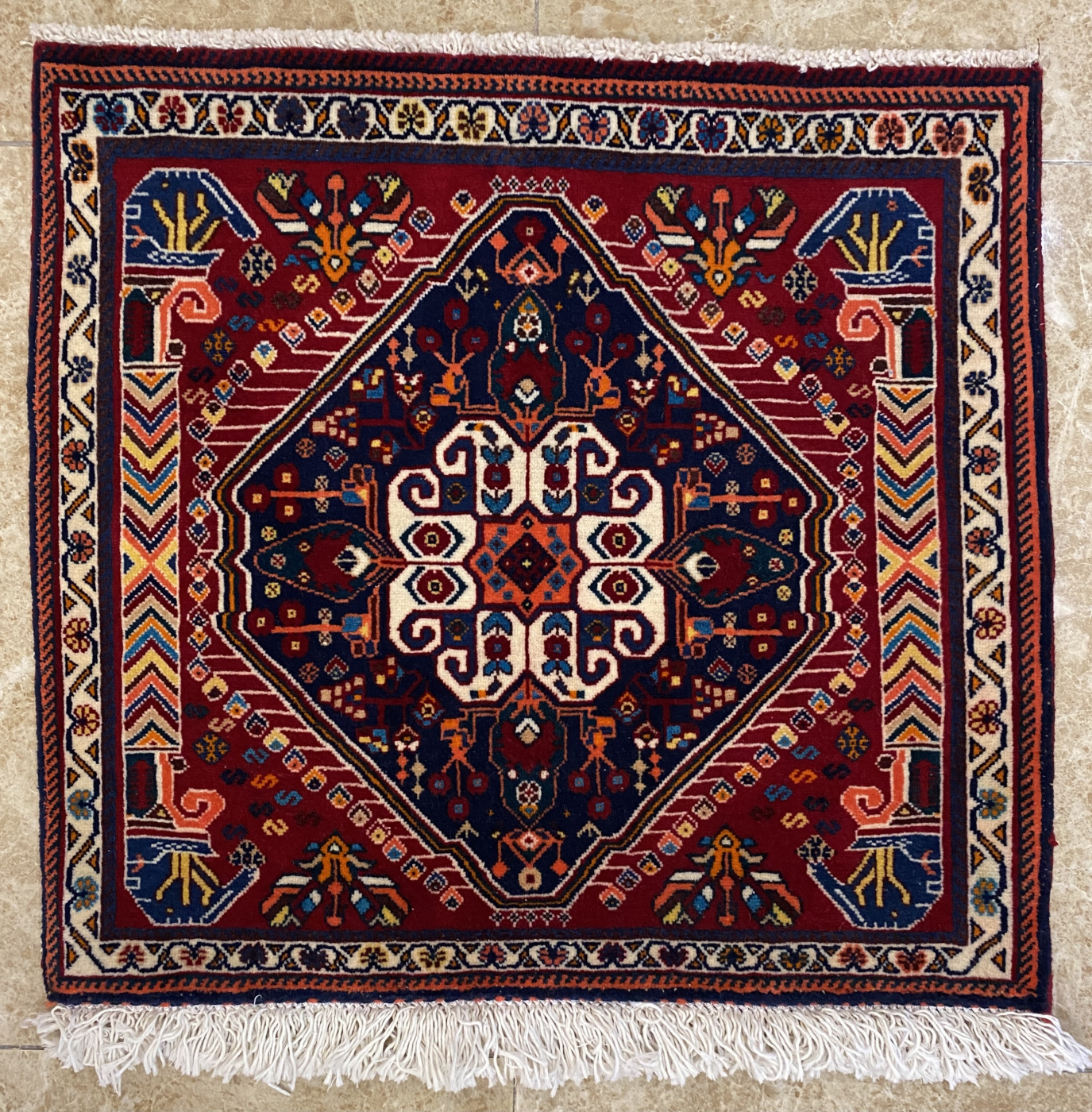 فرش دستباف جفت پشتی شیراز (نقشه ترنج دار لاکی)