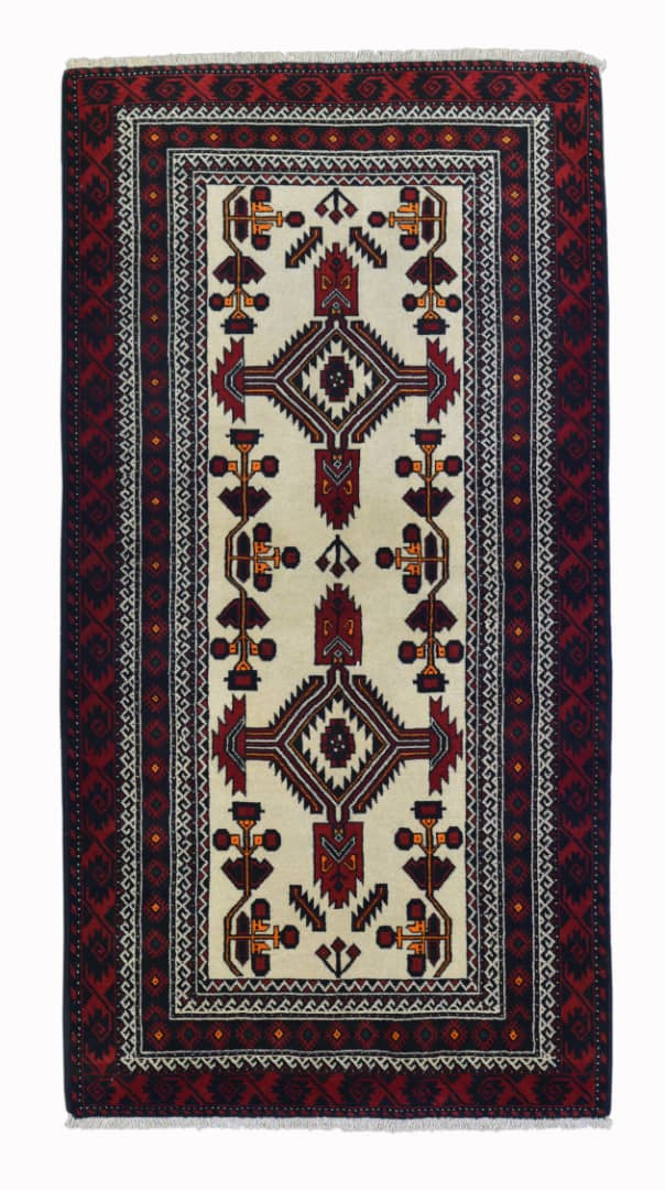 فرش دستباف ذرع و نیم بلوچی (نقشه ترنج دار کرم)