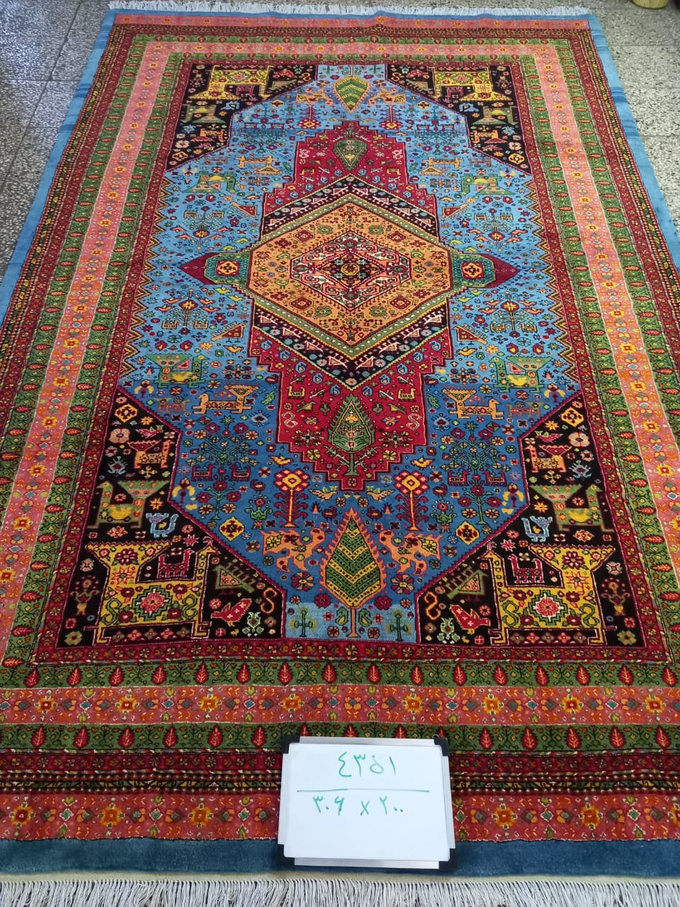 فرش دستباف جفت شش متری خراسان (نقشه لچک ترنج آبی)