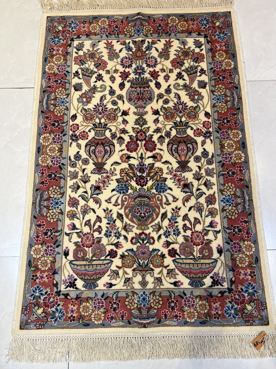 فرش دستباف قالیچه مشهد (نقشه کاسه کوزهای کرم)