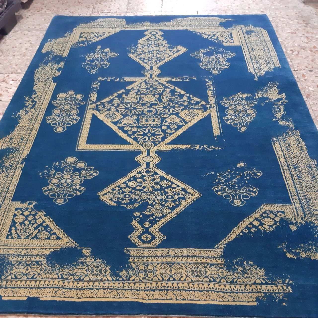 فرش دستباف پرده کردستان (نقشه لچک ترنج آبی)