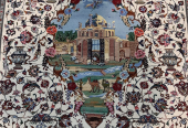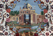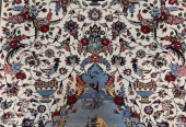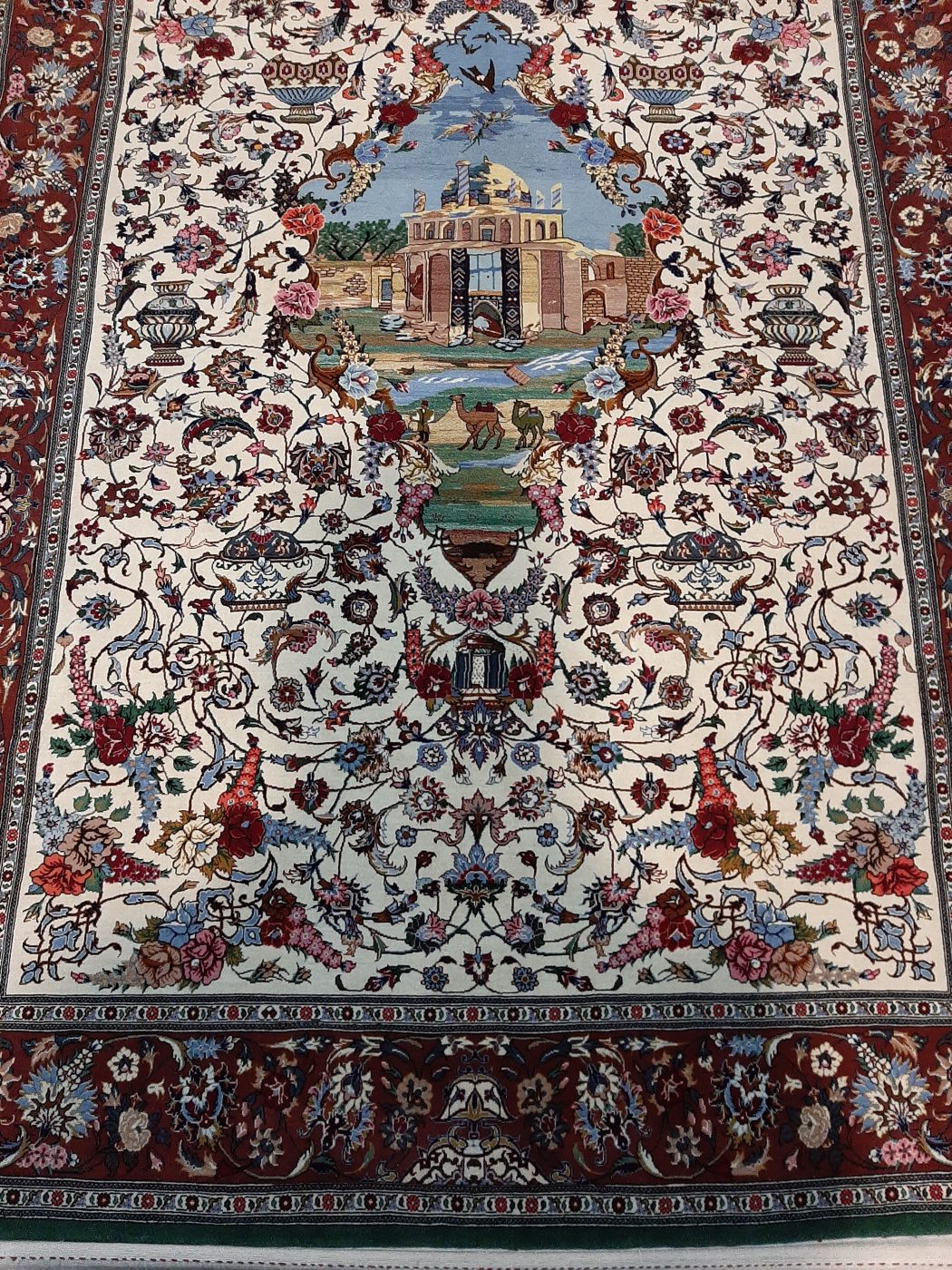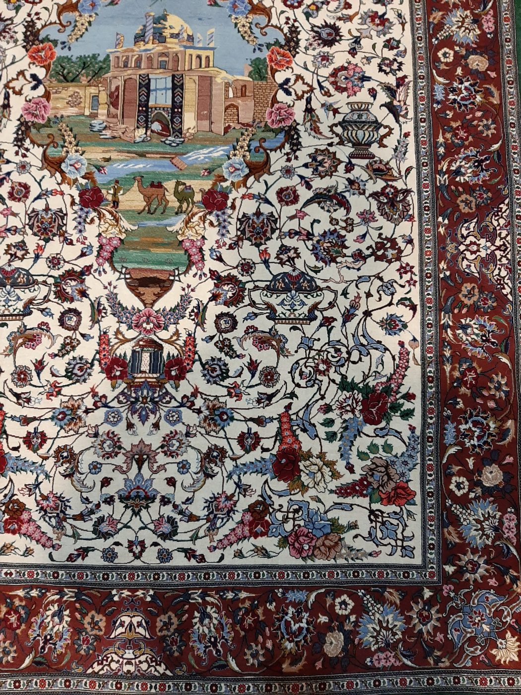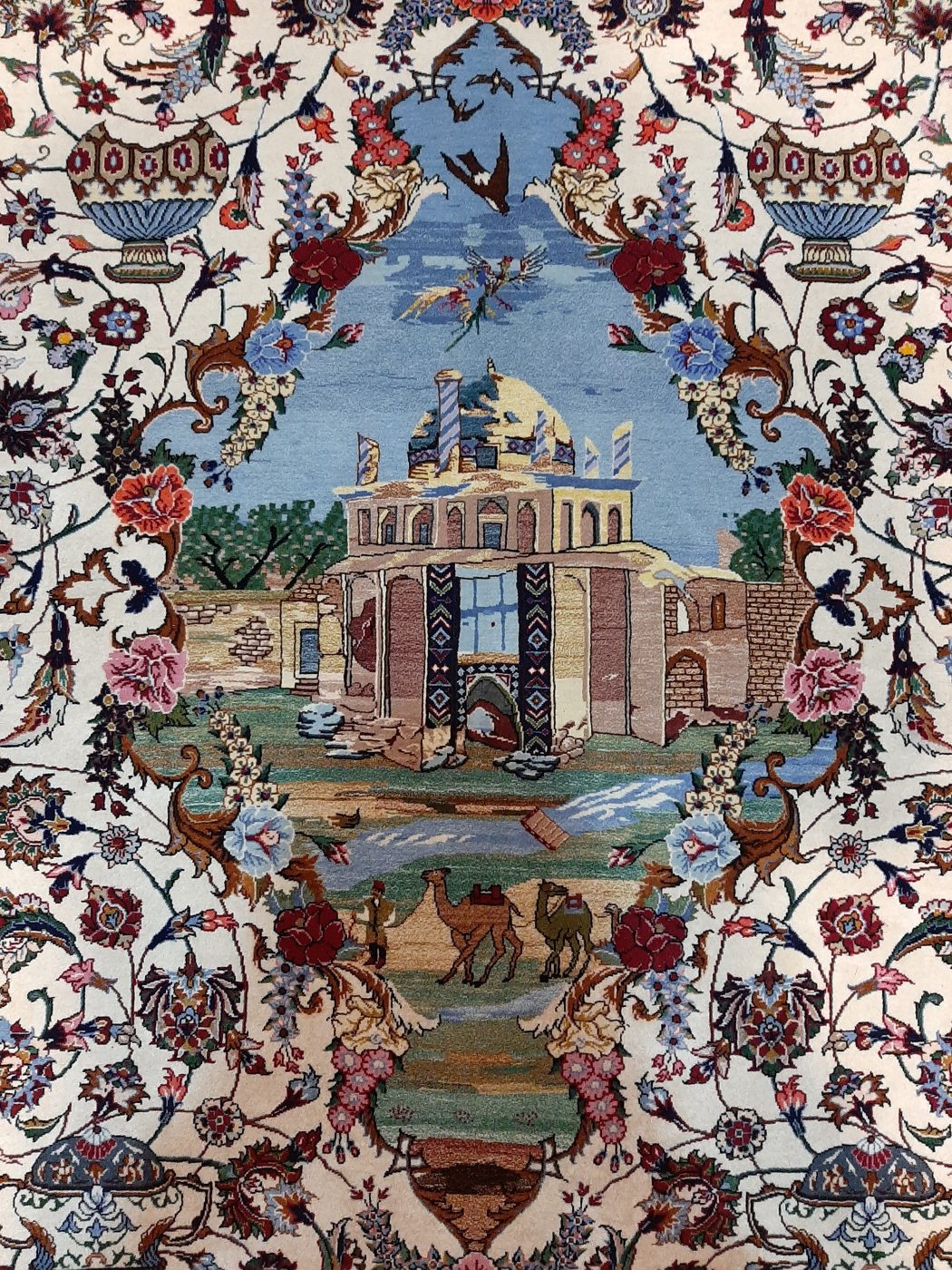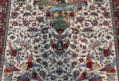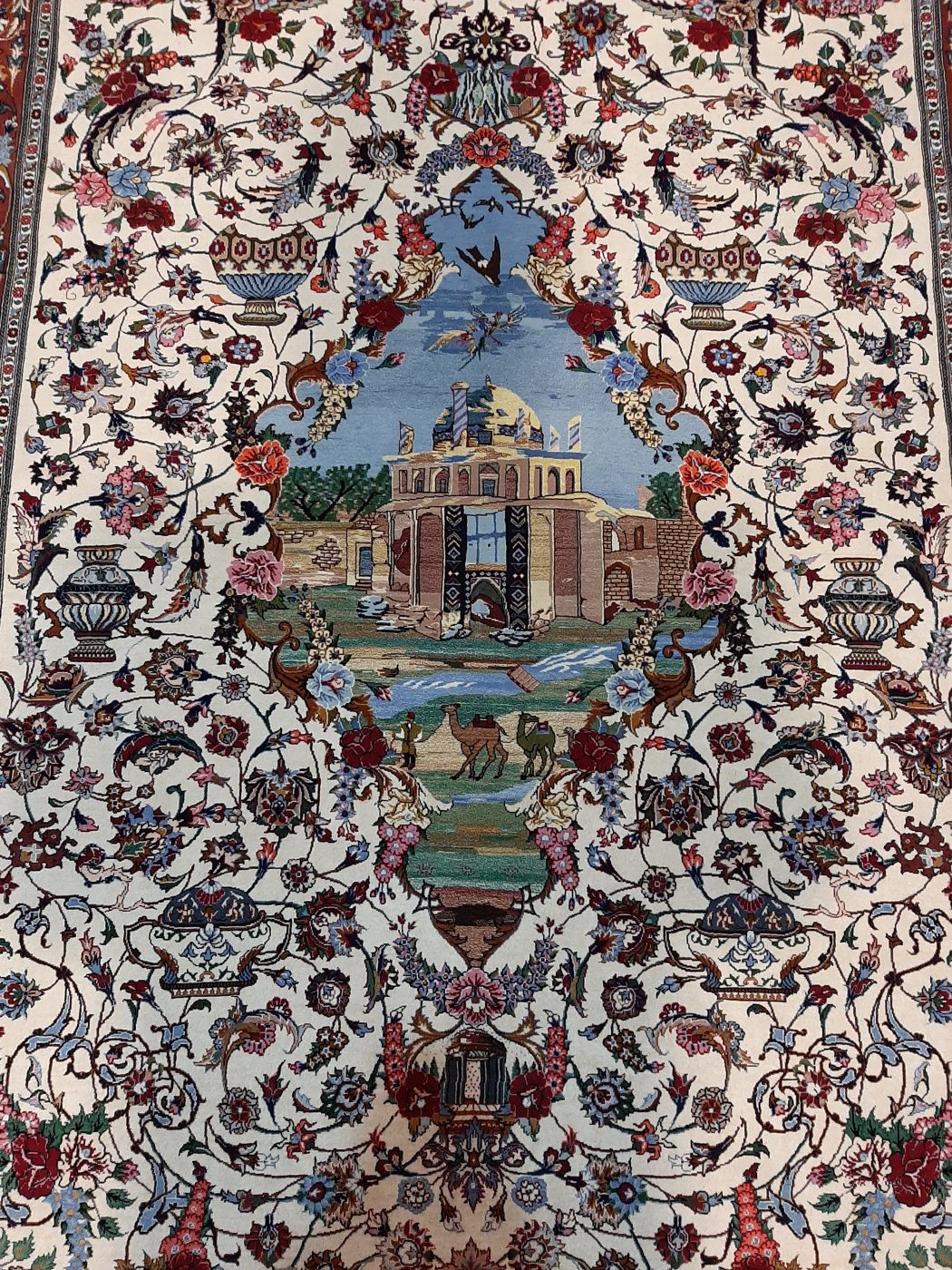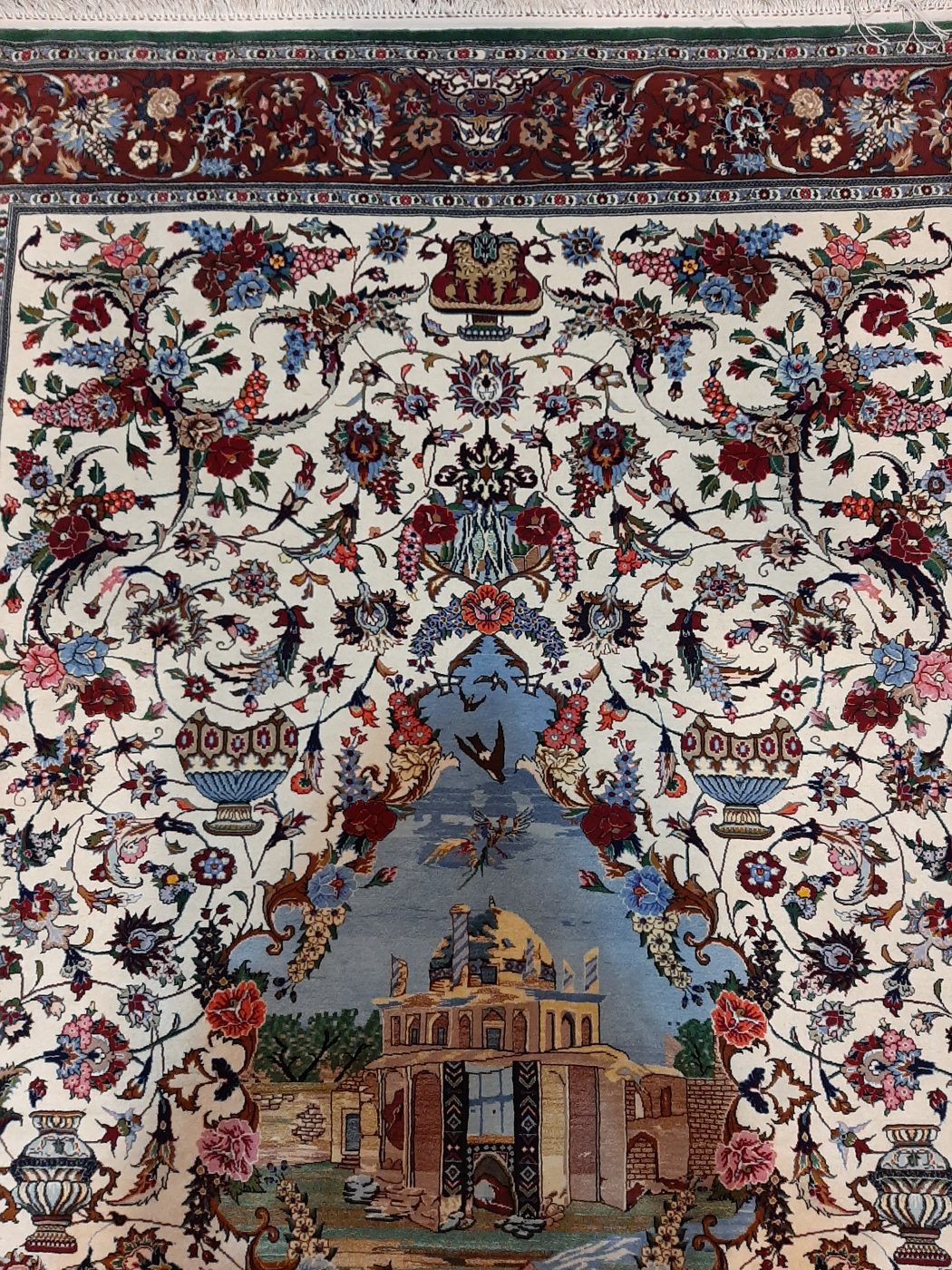فرش دستباف قالیچه قم (نقشه افشان و ترنج کرم)