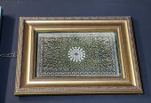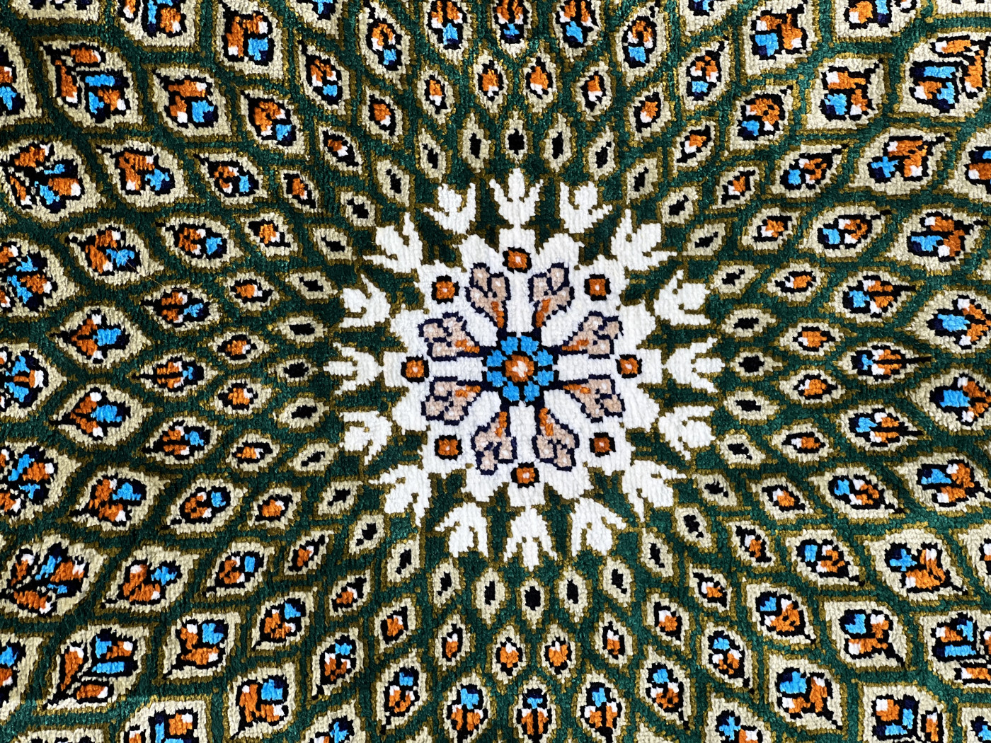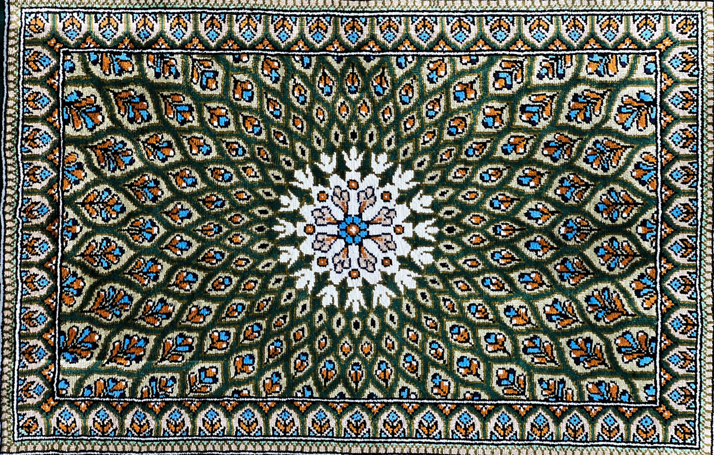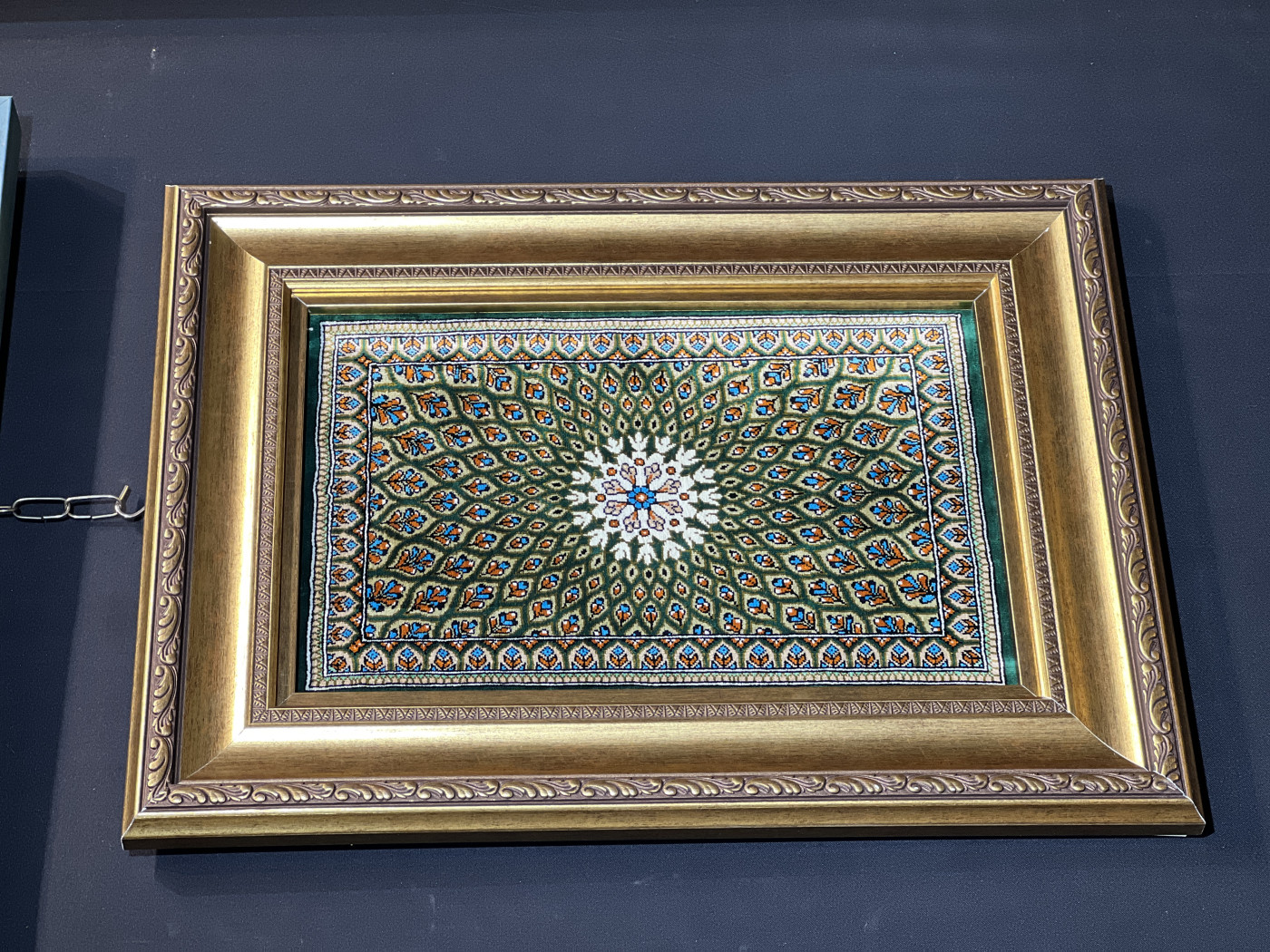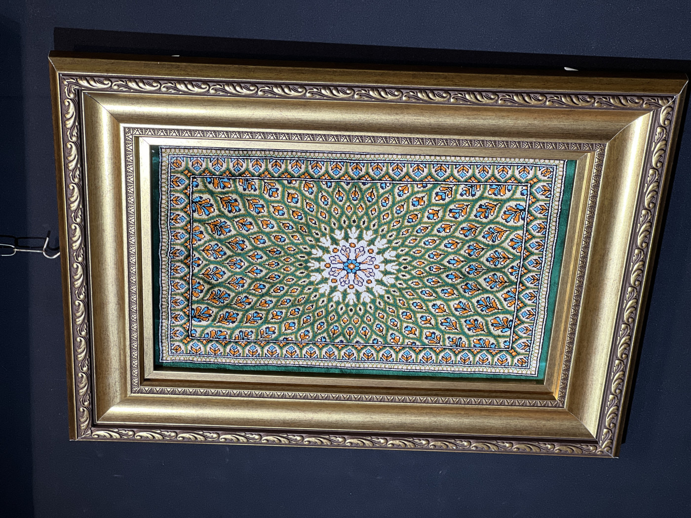 تابلو فرش دستباف کوچک پارچه قم (نقشه گنبد سبز)