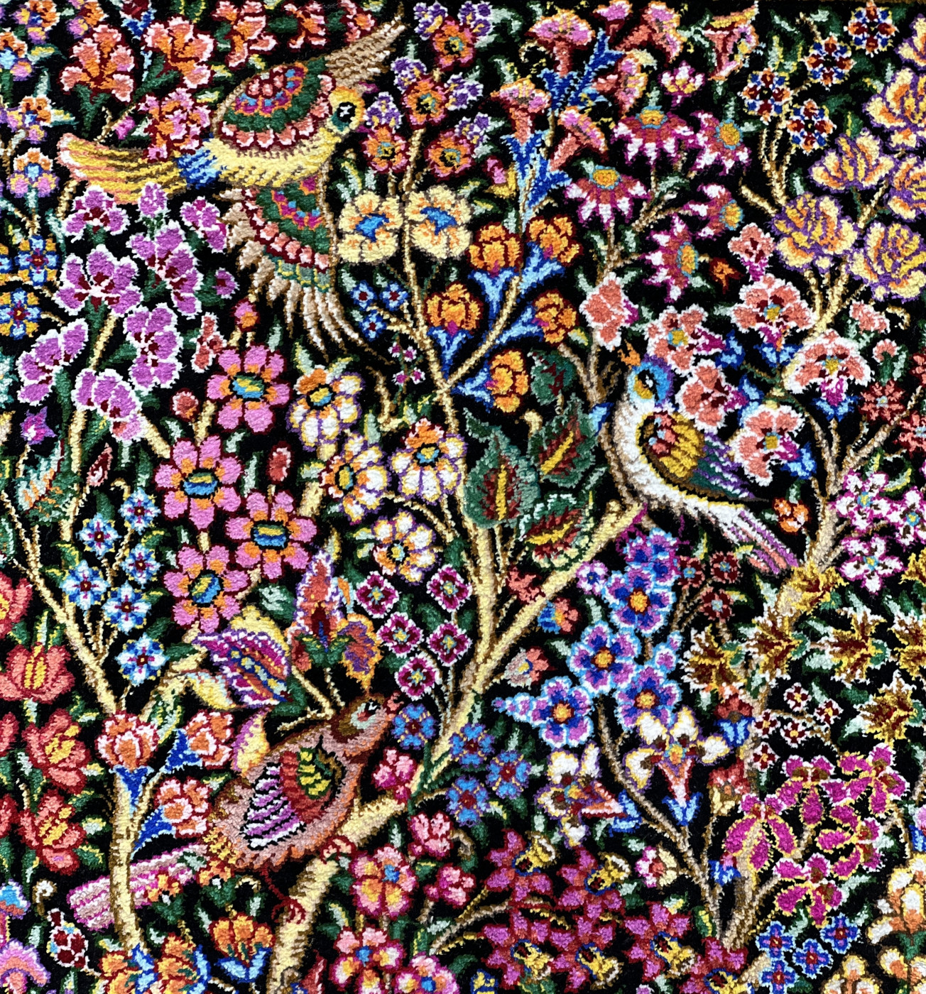 👈 تابلو فرش دستباف قم باغ پرندگان