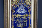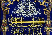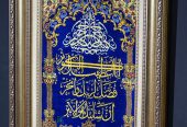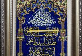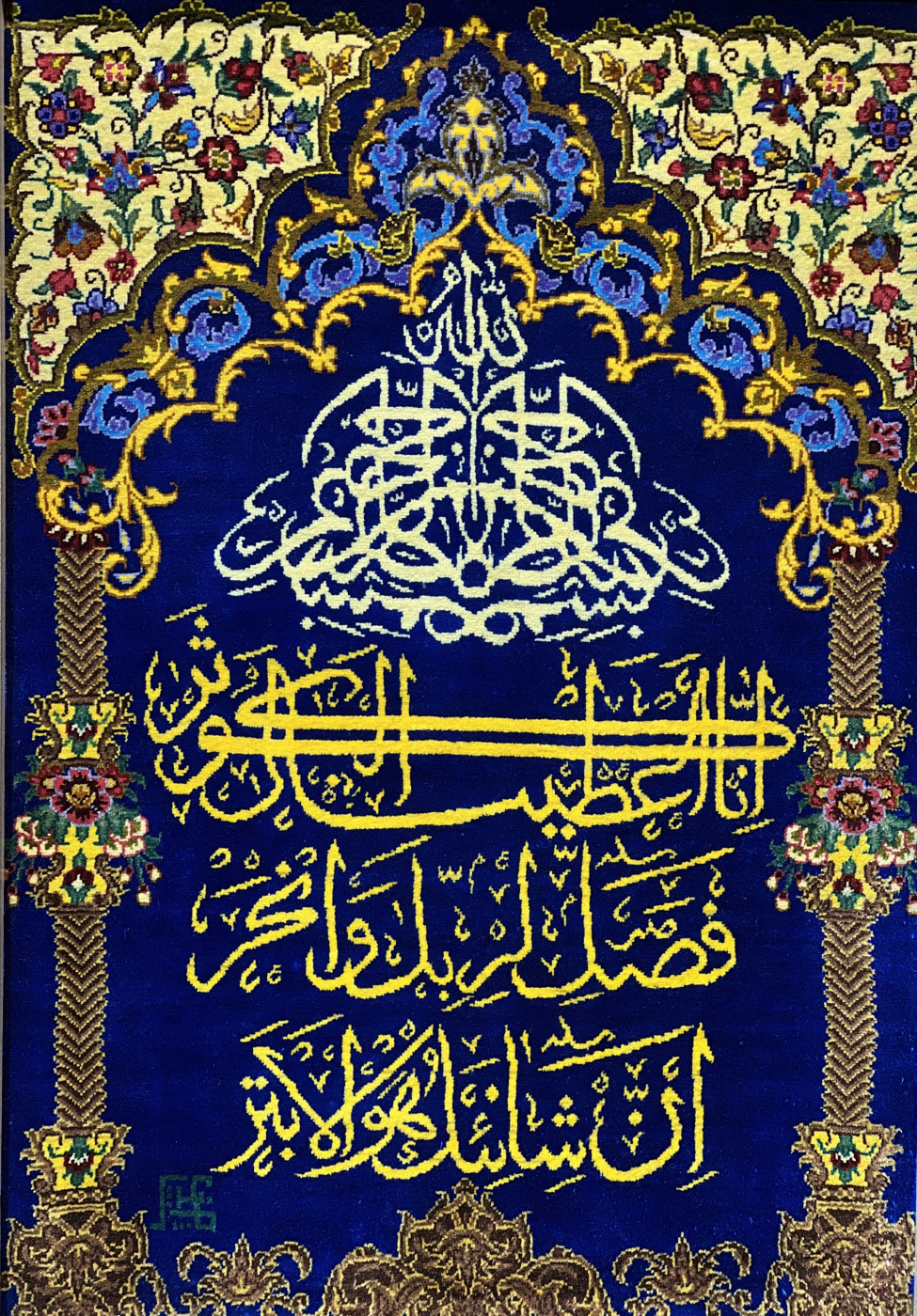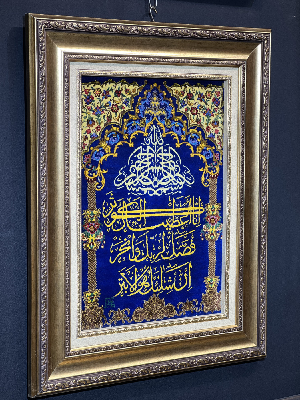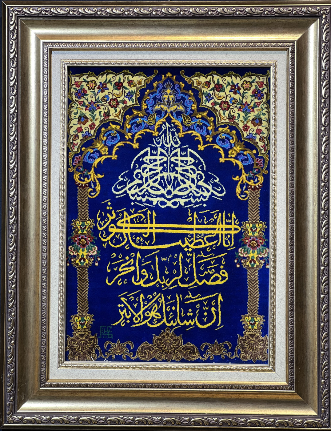 تابلو فرش دستباف کوچک پارچه قم (نقشه آیه سرمهای)