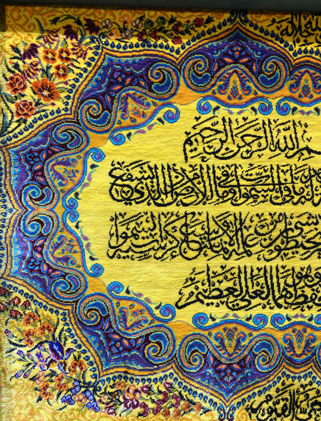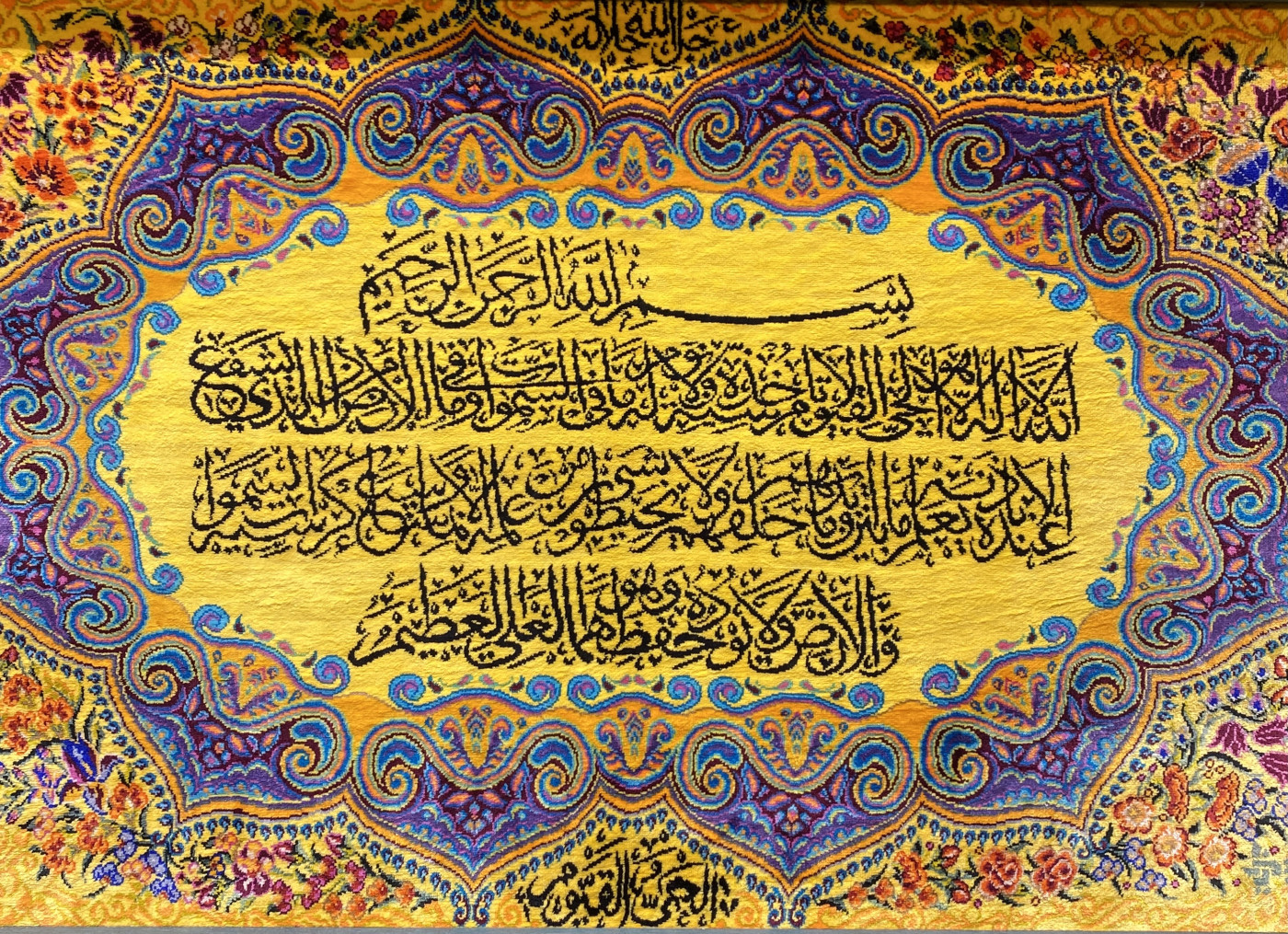 تابلو فرش دستباف پشتی قم (نقشه آیه زرد)