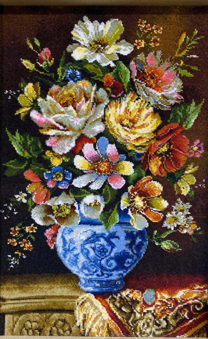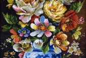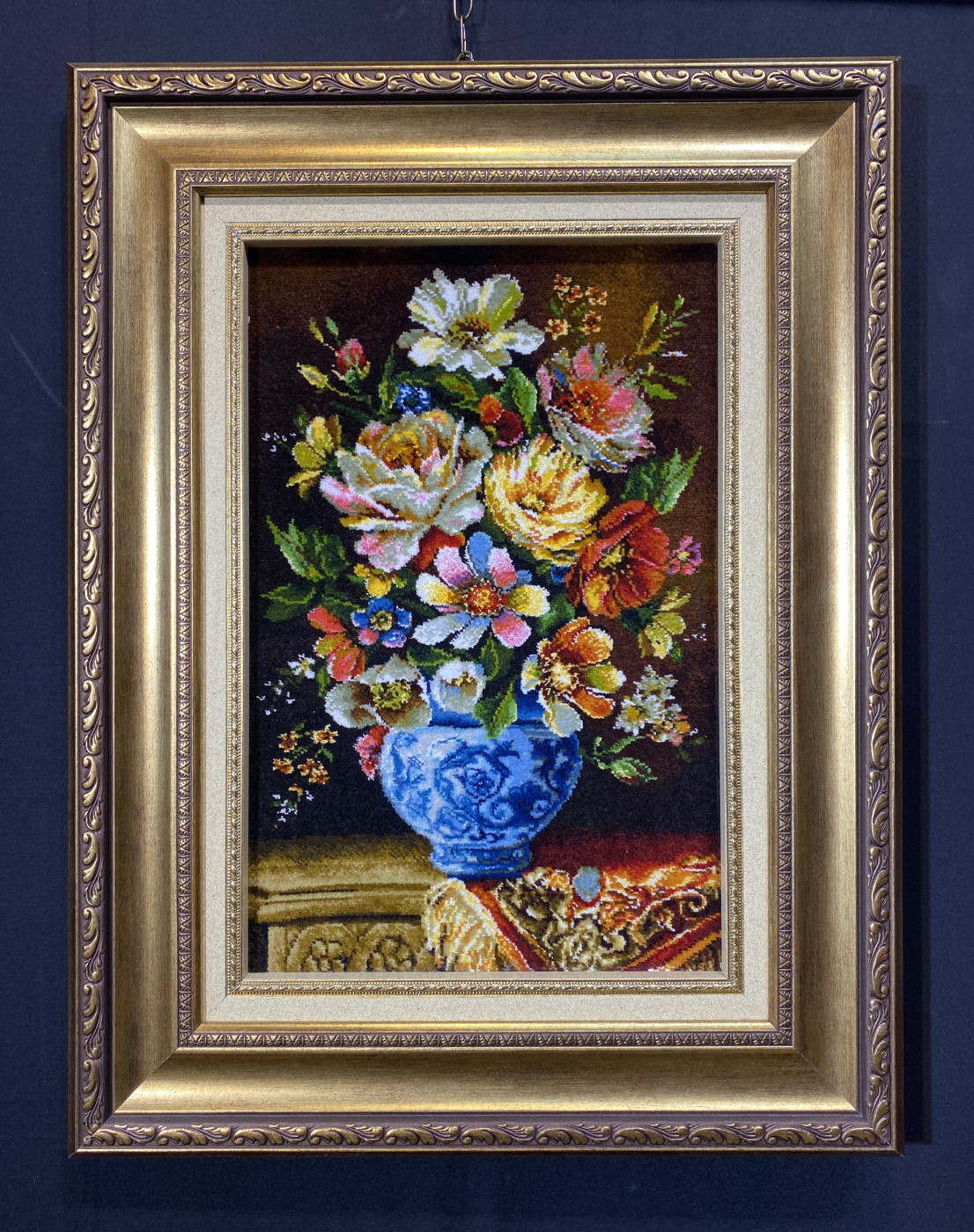 تابلو فرش دستباف پشتی تبریز (نقشه گلدانی الوان)