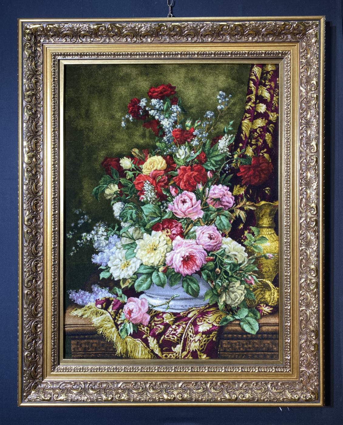 تابلو فرش دستباف ذرع و چارک تبریز (نقشه گلدانی الوان)