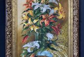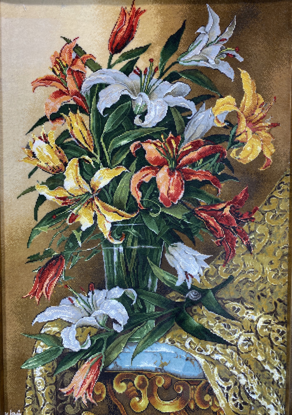 تابلو فرش دستباف پشتی تبریز (نقشه گلدانی الوان)