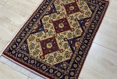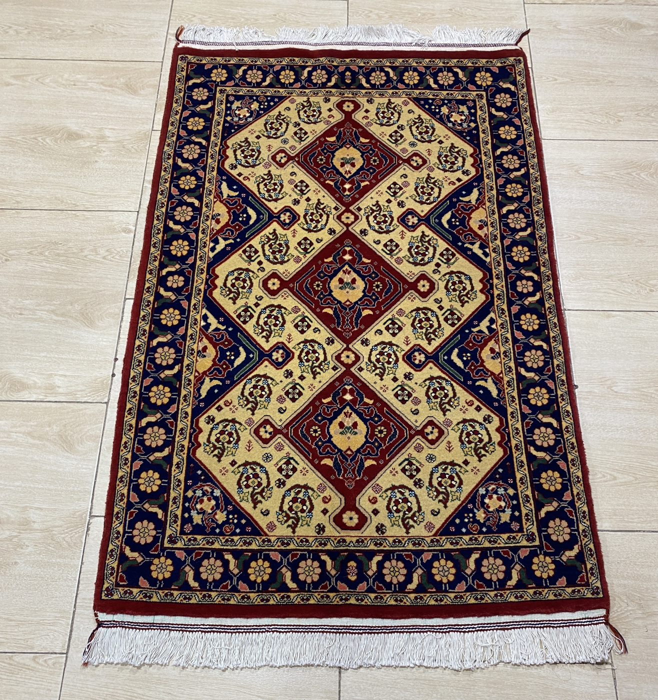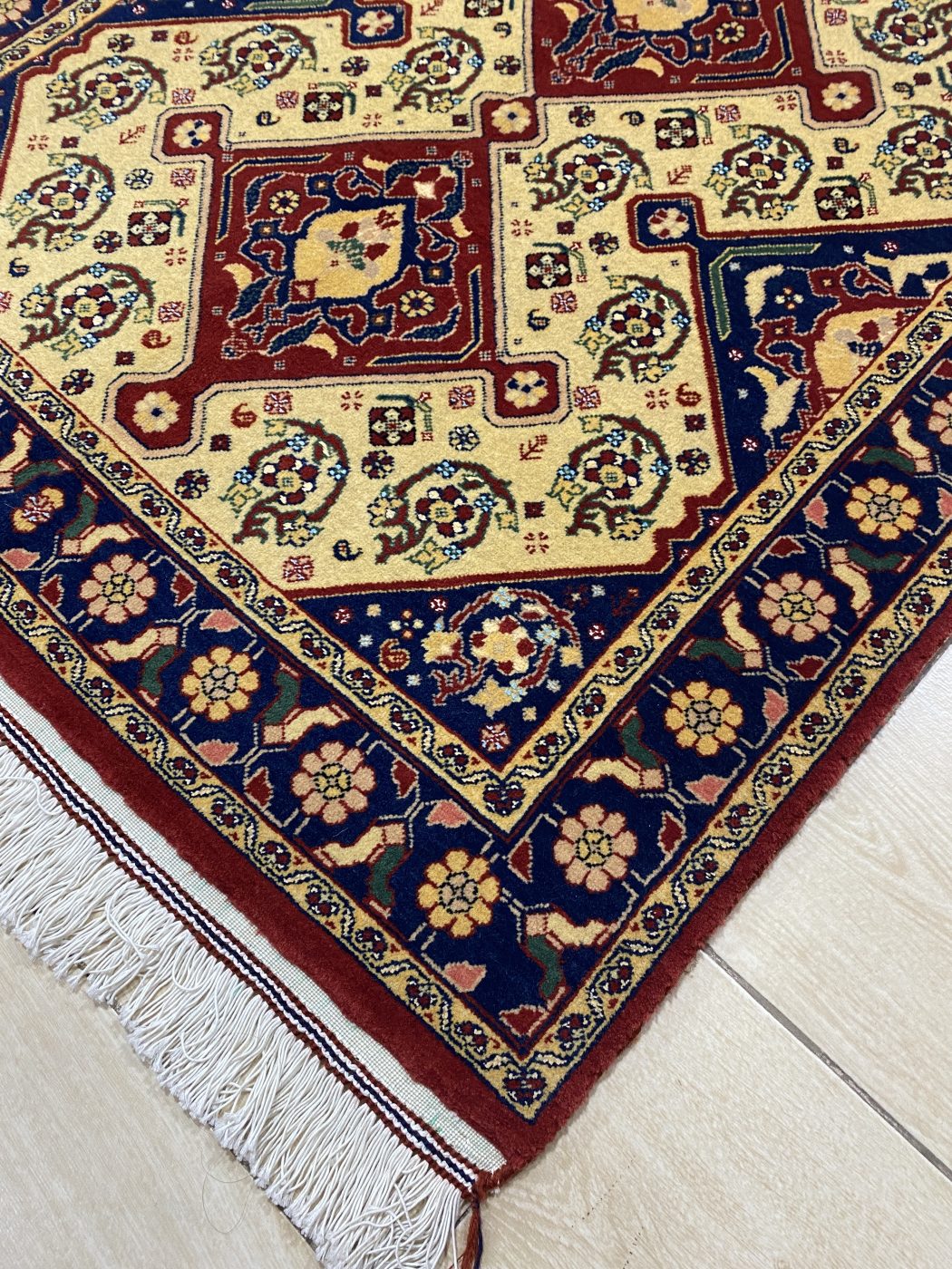 فرش دستباف ذرع و نیم قشقایی (نقشه سه ترنج زرد)