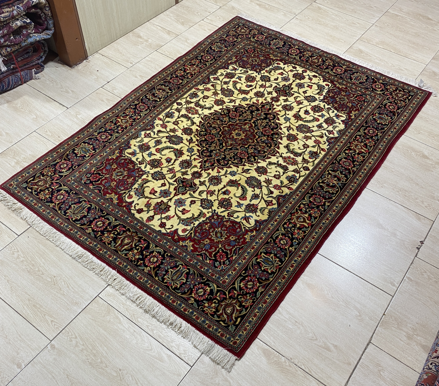 فرش دستباف جفت قالیچه قم (نقشه لچک ترنج کرم)