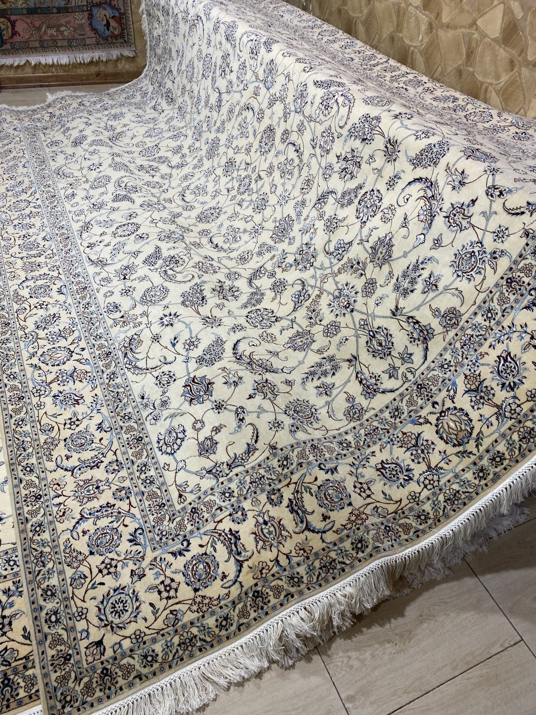 فرش دستباف جفت نه متری نایین (نقشه افشان کرم)