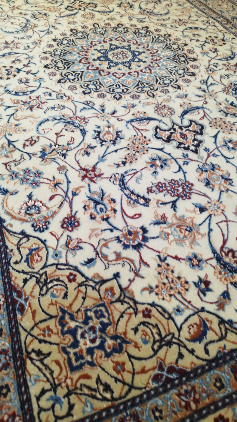 فرش دستباف قالیچه نایین (نقشه لچک ترنج کرم)
