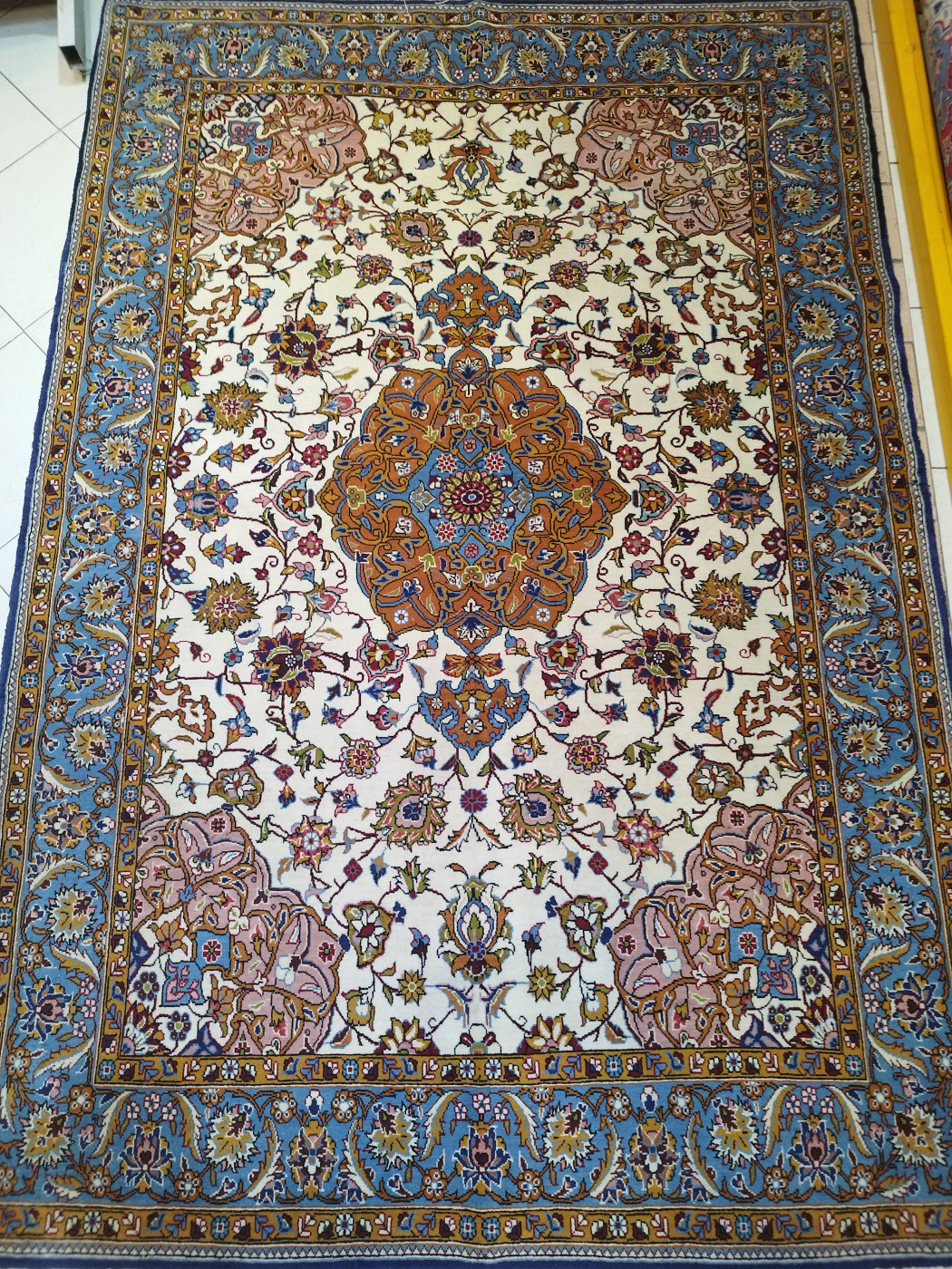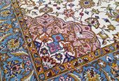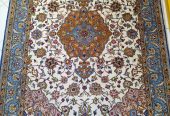 فرش دستباف قالیچه قم (نقشه لچک ترنج کرم)