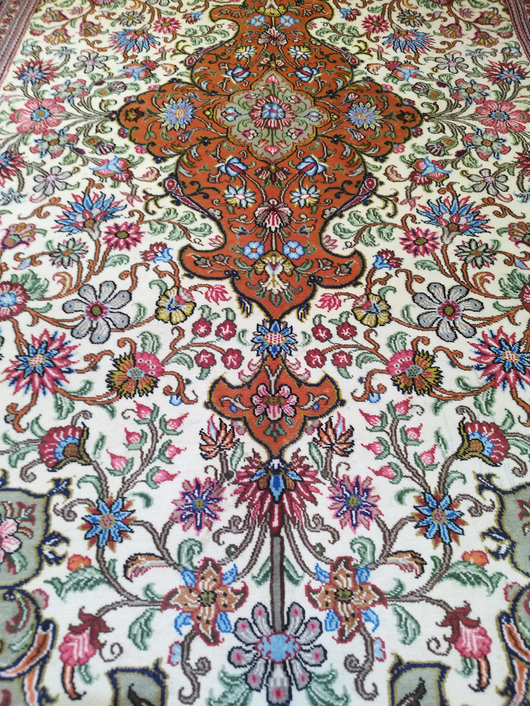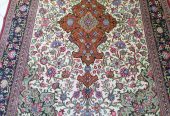 فرش دستباف قالیچه قم (نقشه لچک ترنج کرم)