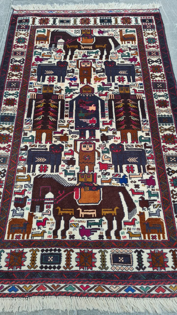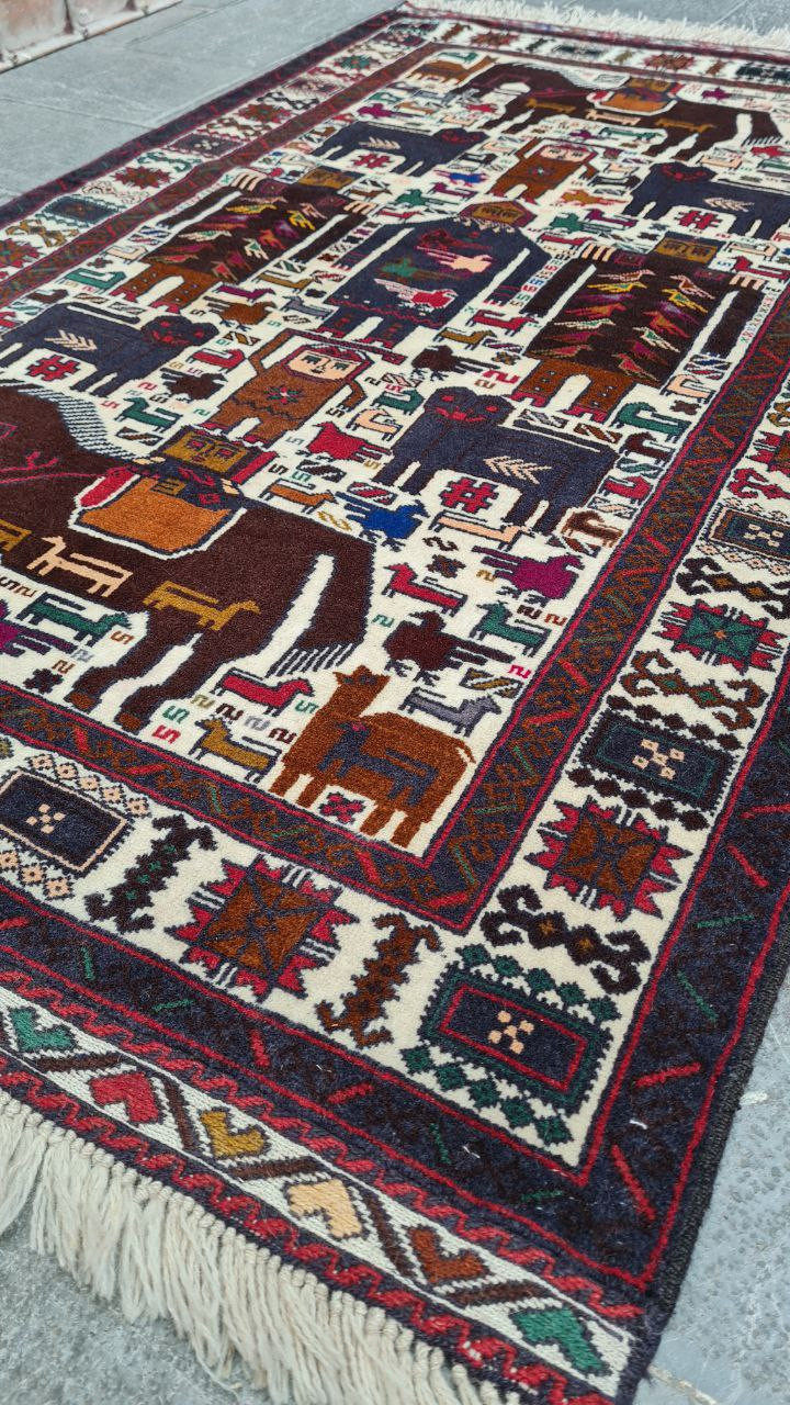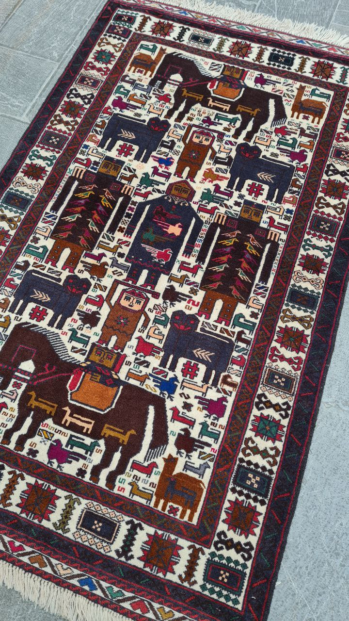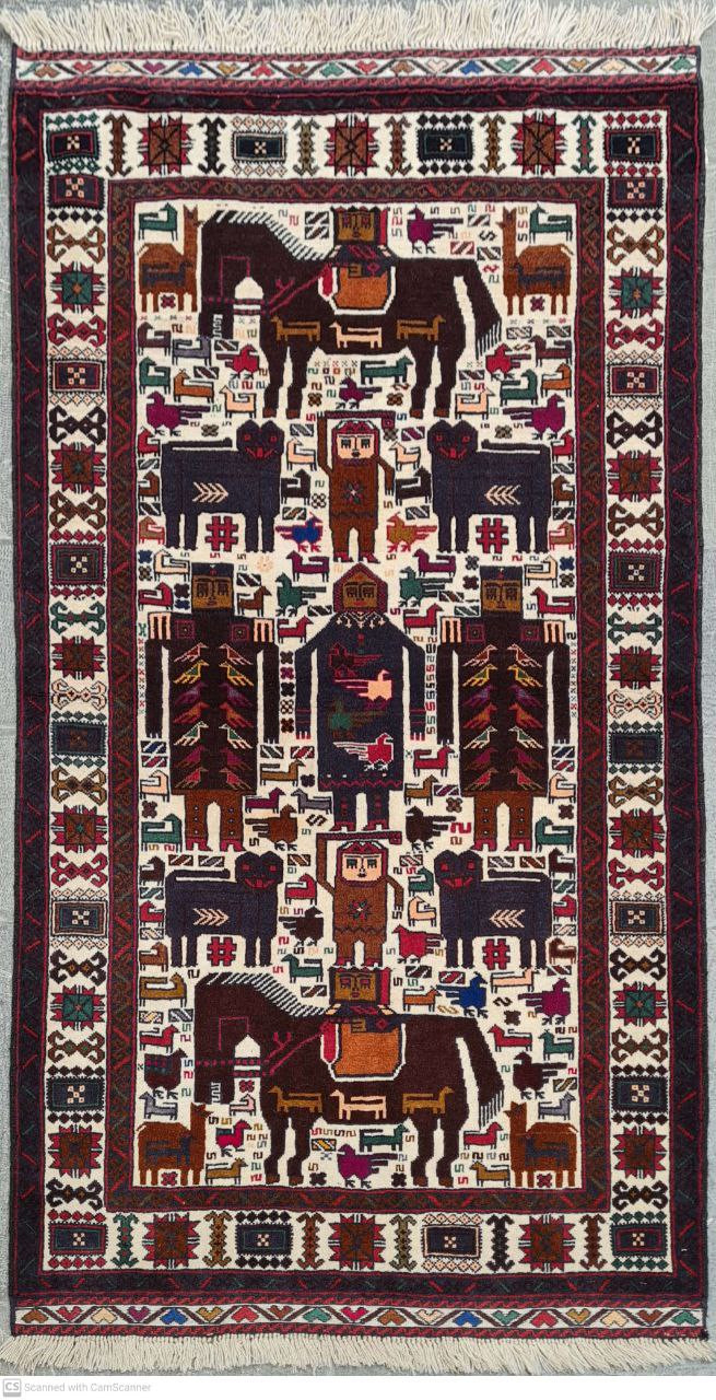 فرش دستباف ذرع و نیم بلوچی (نقشه تصویری کرم)