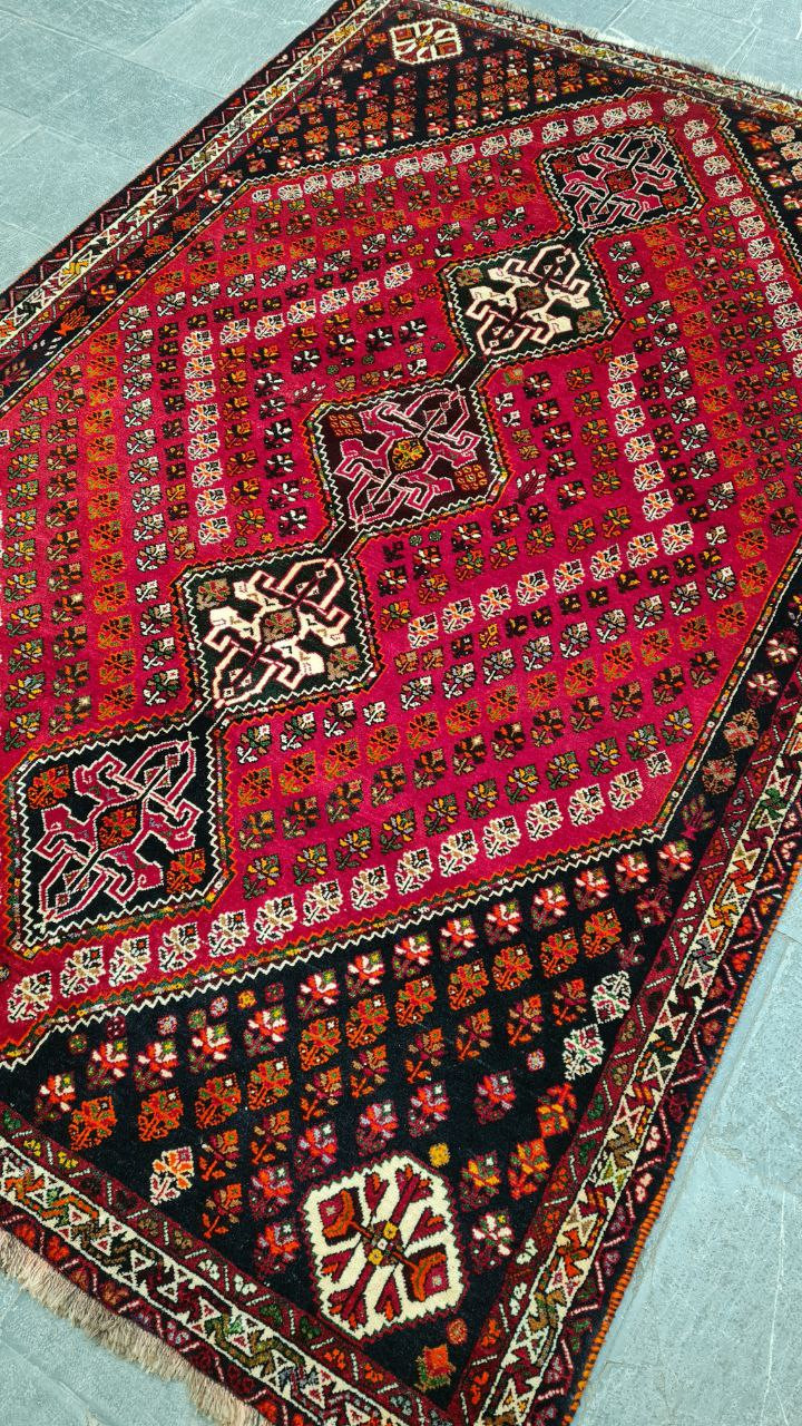 فرش دستباف پرده شیراز (نقشه ترنج دار لاکی)