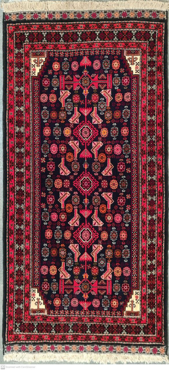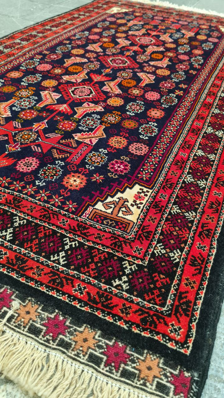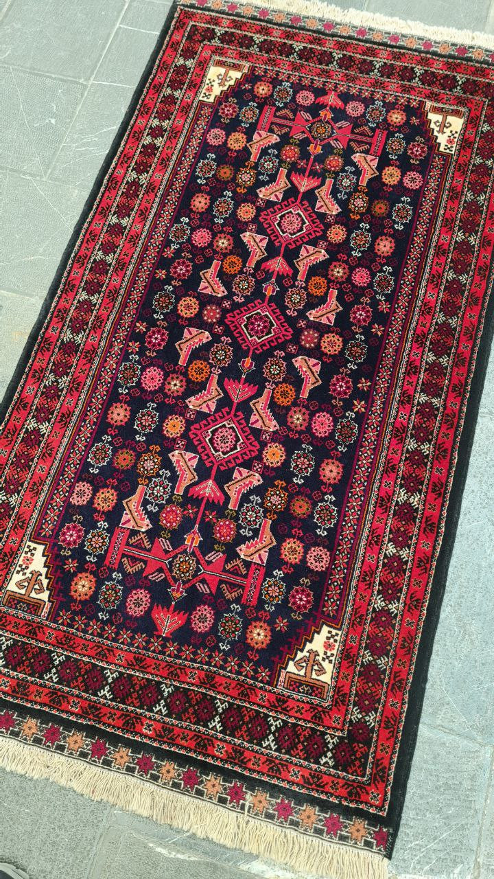 فرش دستباف ذرع و نیم بلوچی (نقشه لچک ترنج سرمهای)