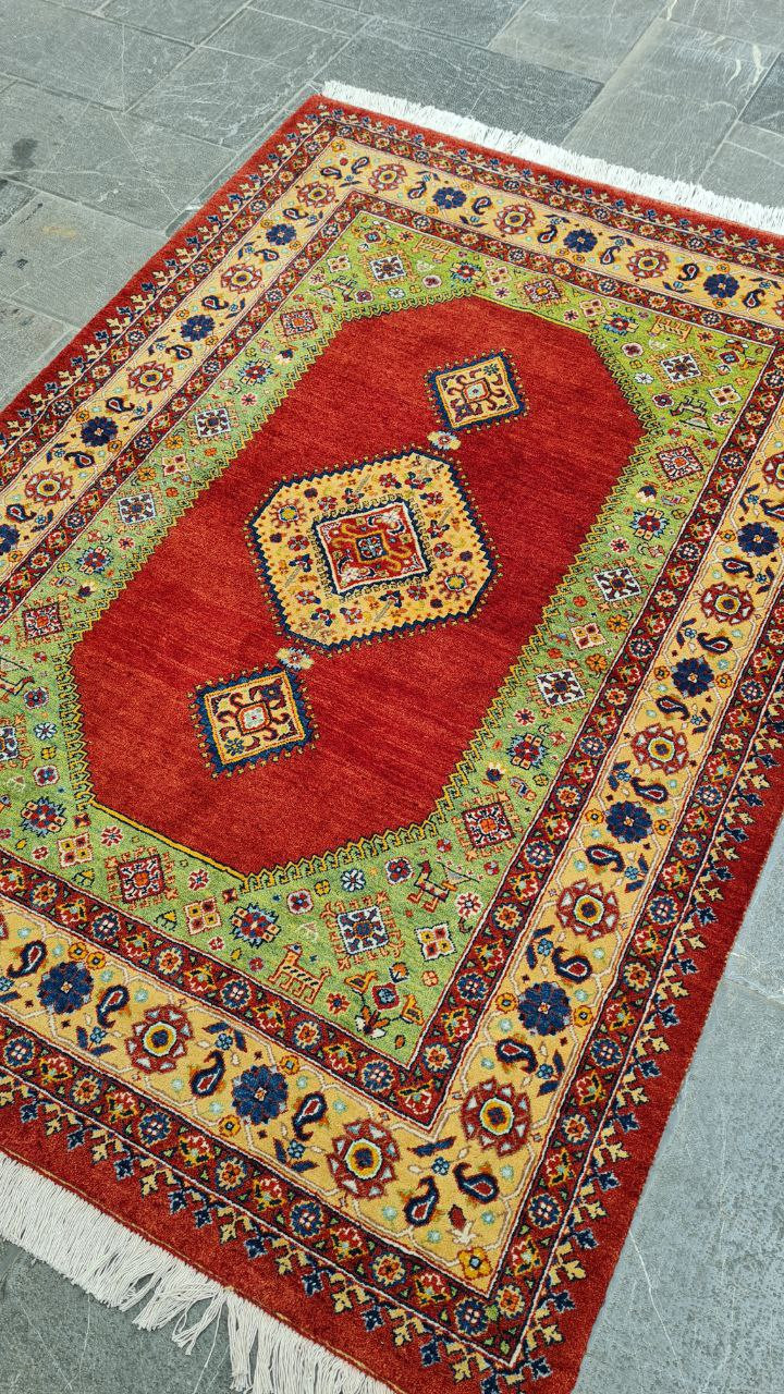 فرش دستباف قالیچه قشقایی (نقشه ترنج دار لاکی)