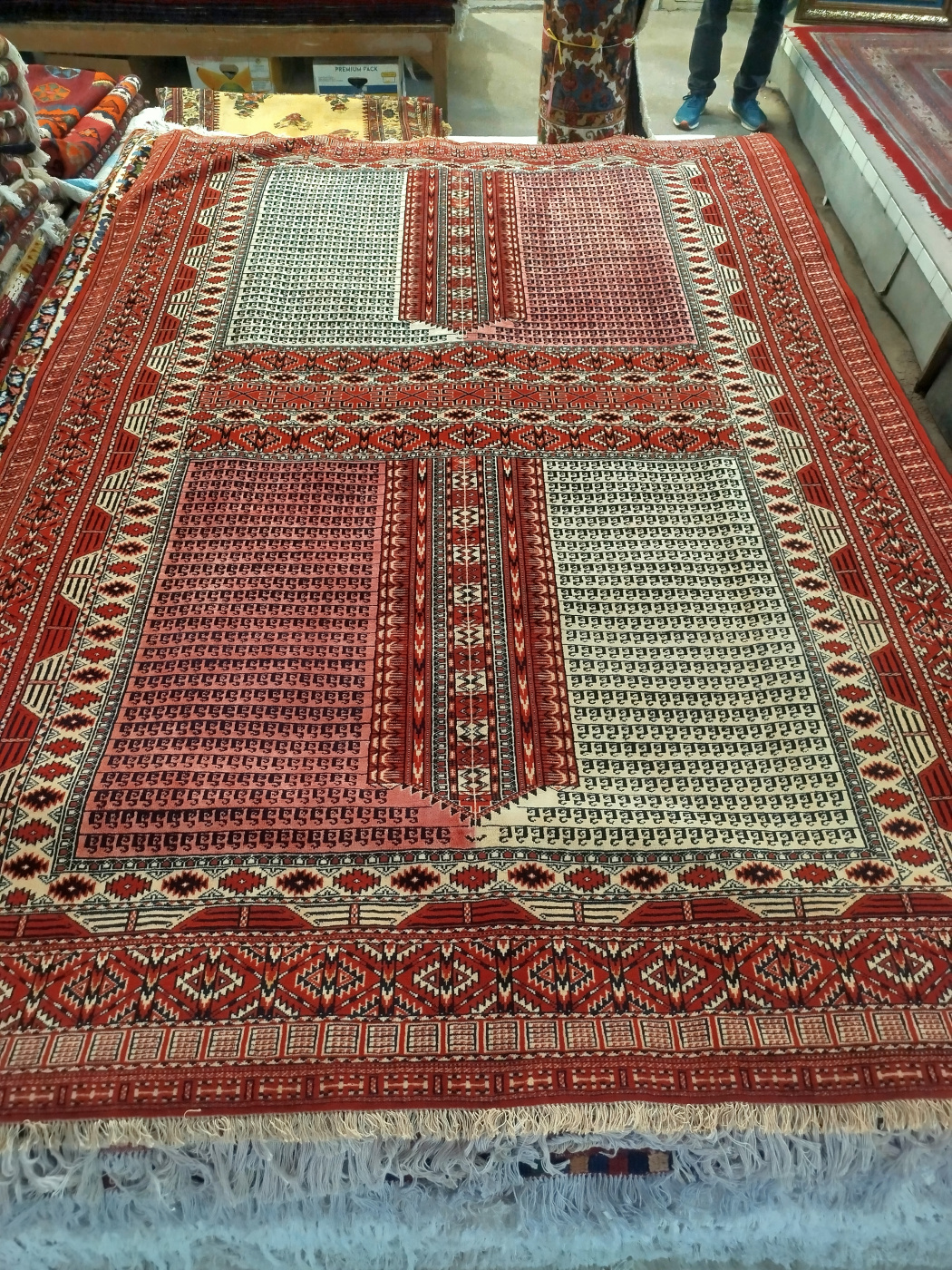 فرش دستباف شش متری ترکمن (نقشه چهار متن کرم)