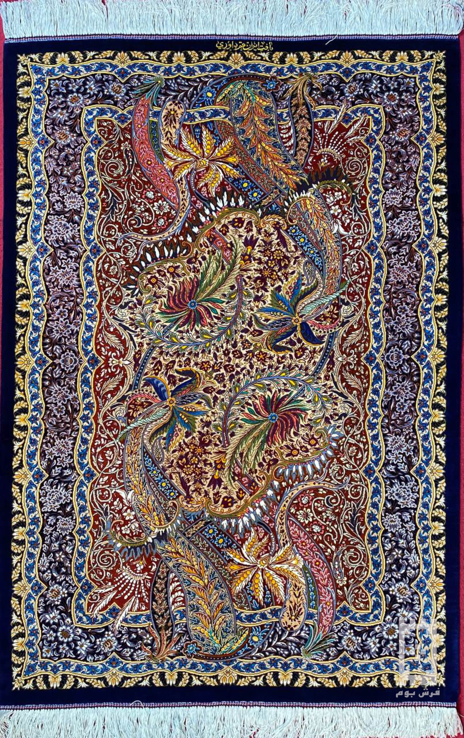 فرش دستباف ذرع و نیم قم (نقشه درختی الوان)