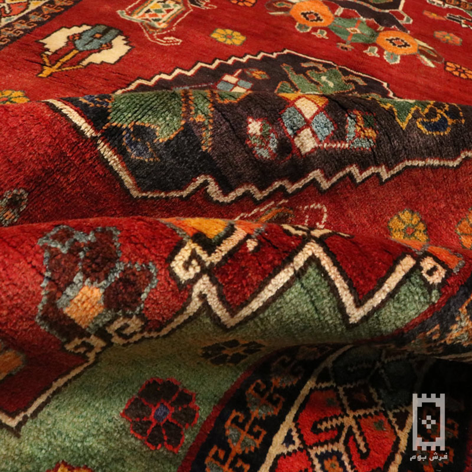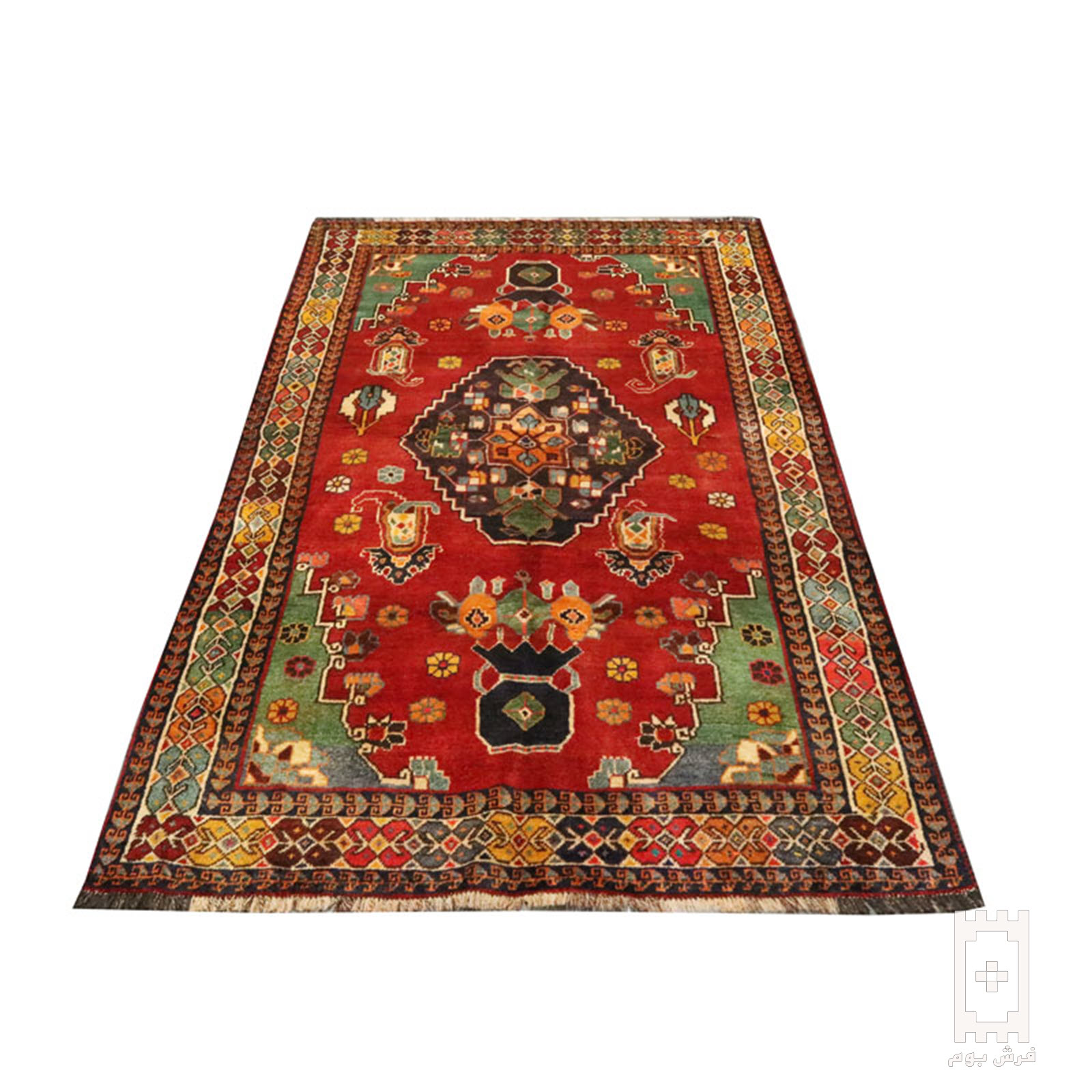 فرش دستباف قالیچه شیراز (نقشه لچک ترنج لاکی)