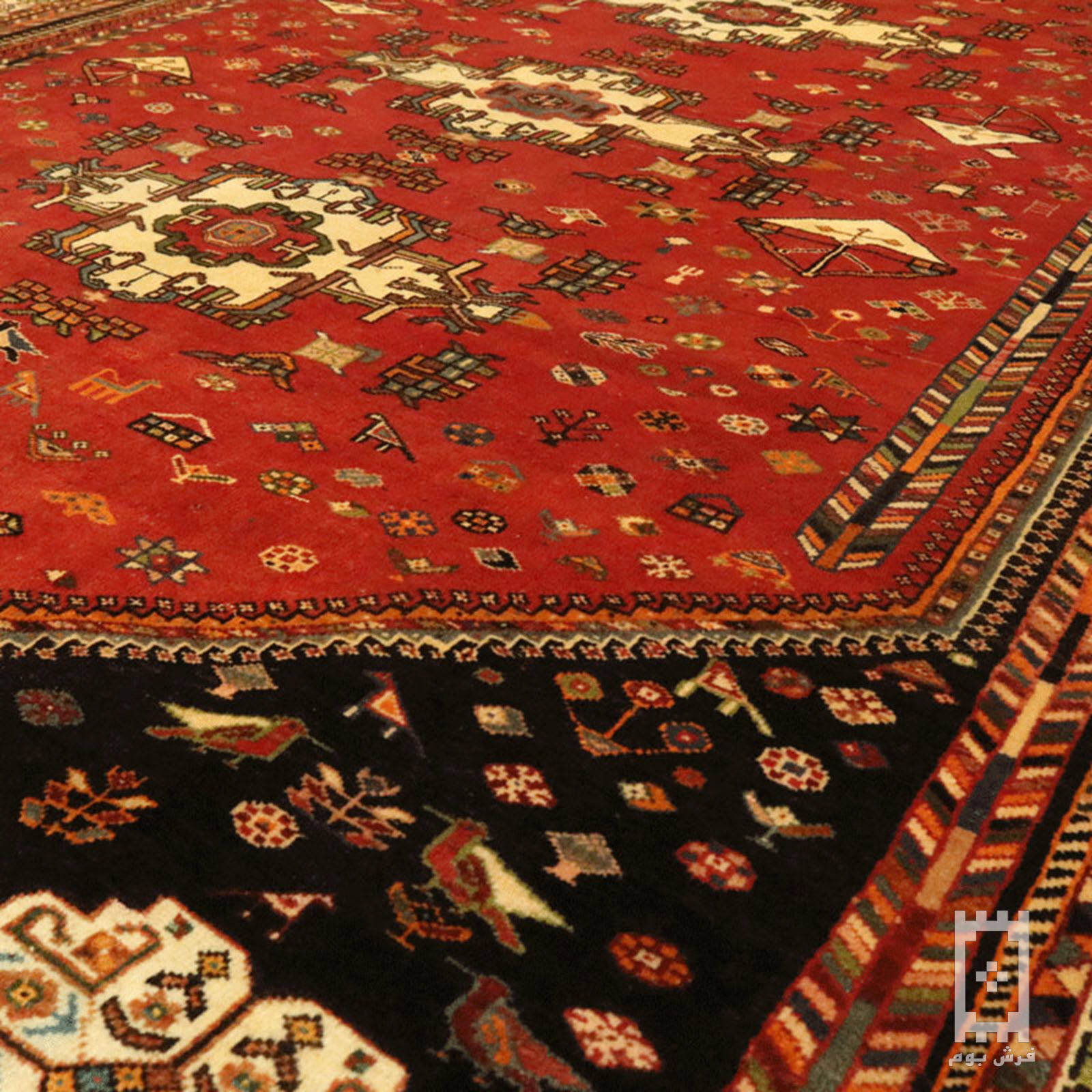 فرش دستباف شش متری شیراز (نقشه سه ترنج لاکی)