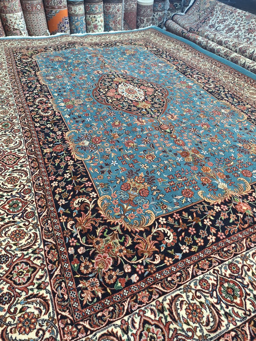 فرش دستباف شش متری بیجار افشار (نقشه ترنج دار آبی)