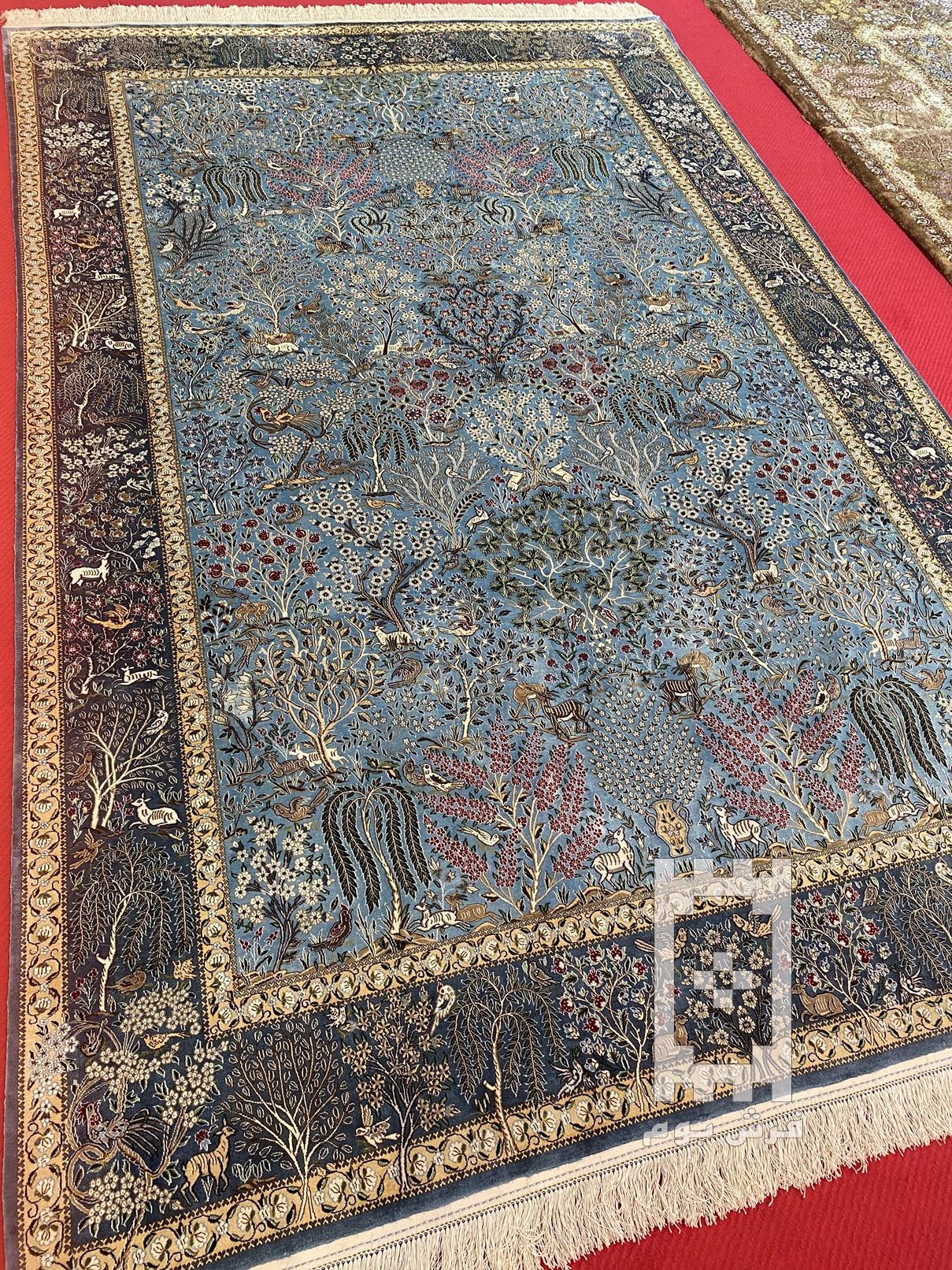 فرش دستباف شش متری نایین (نقشه درختی آبی)