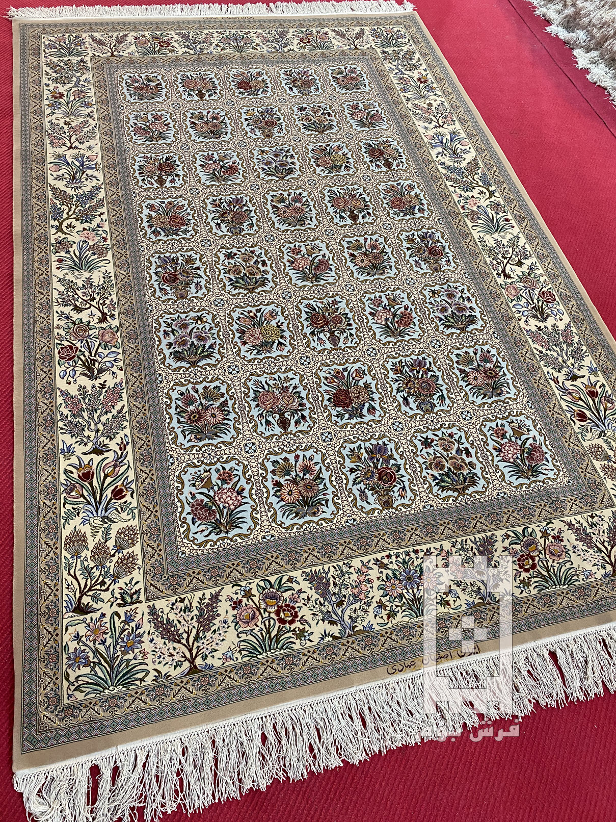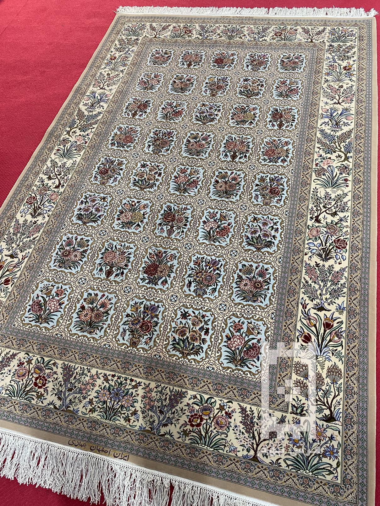 فرش دستباف پرده اصفهان (نقشه خشتی نسکافه ای)