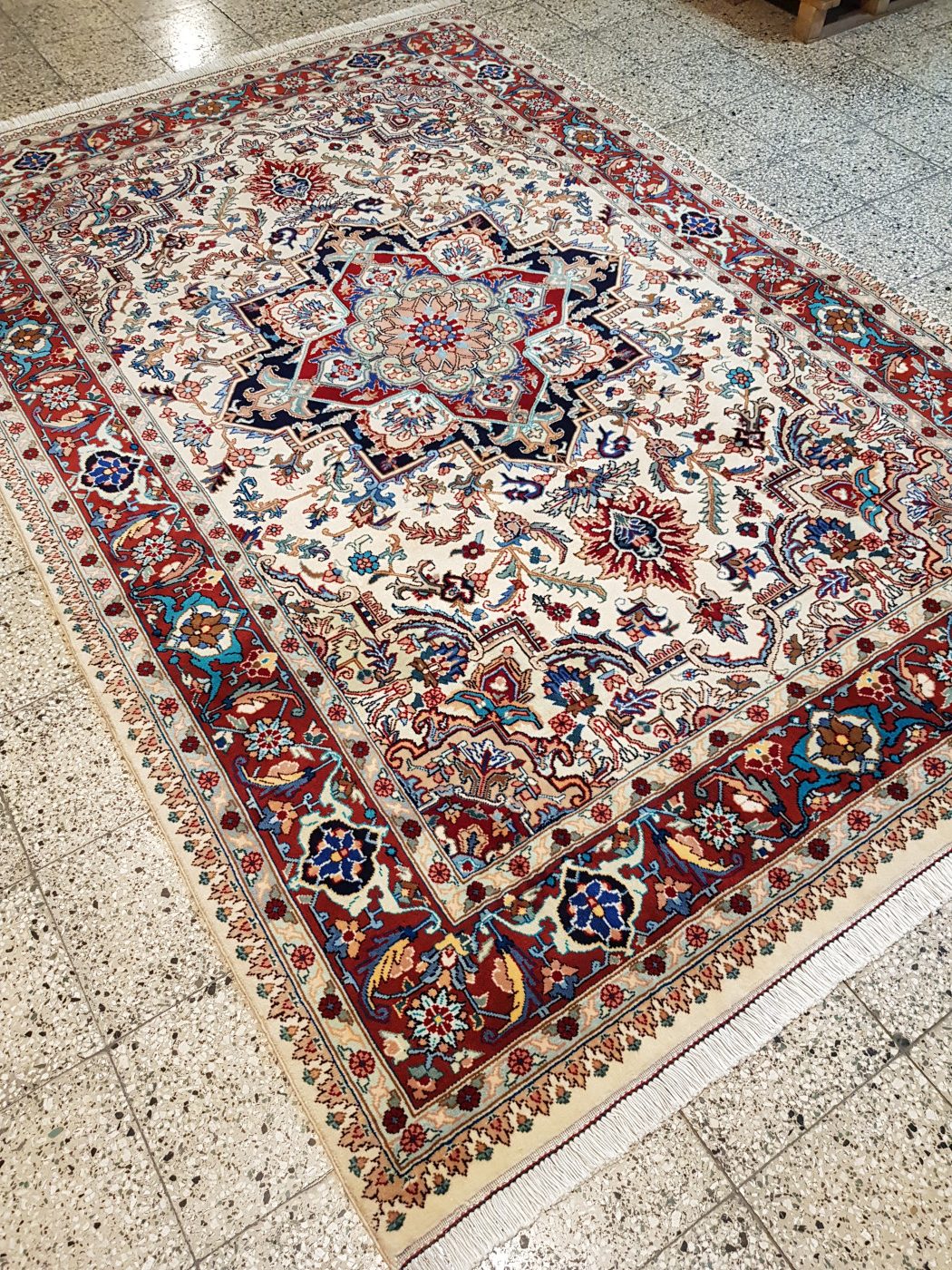 فرش دستباف شش متری هریس (نقشه لچک ترنج کرم)