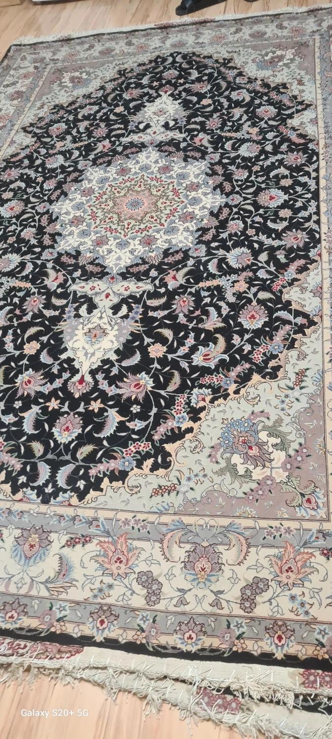 فرش دستباف جفت شش متری تبریز (نقشه لچک ترنج مشکی)