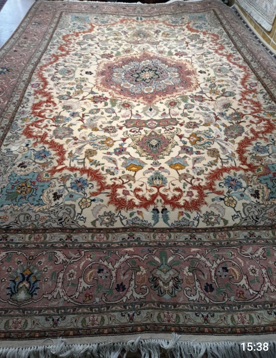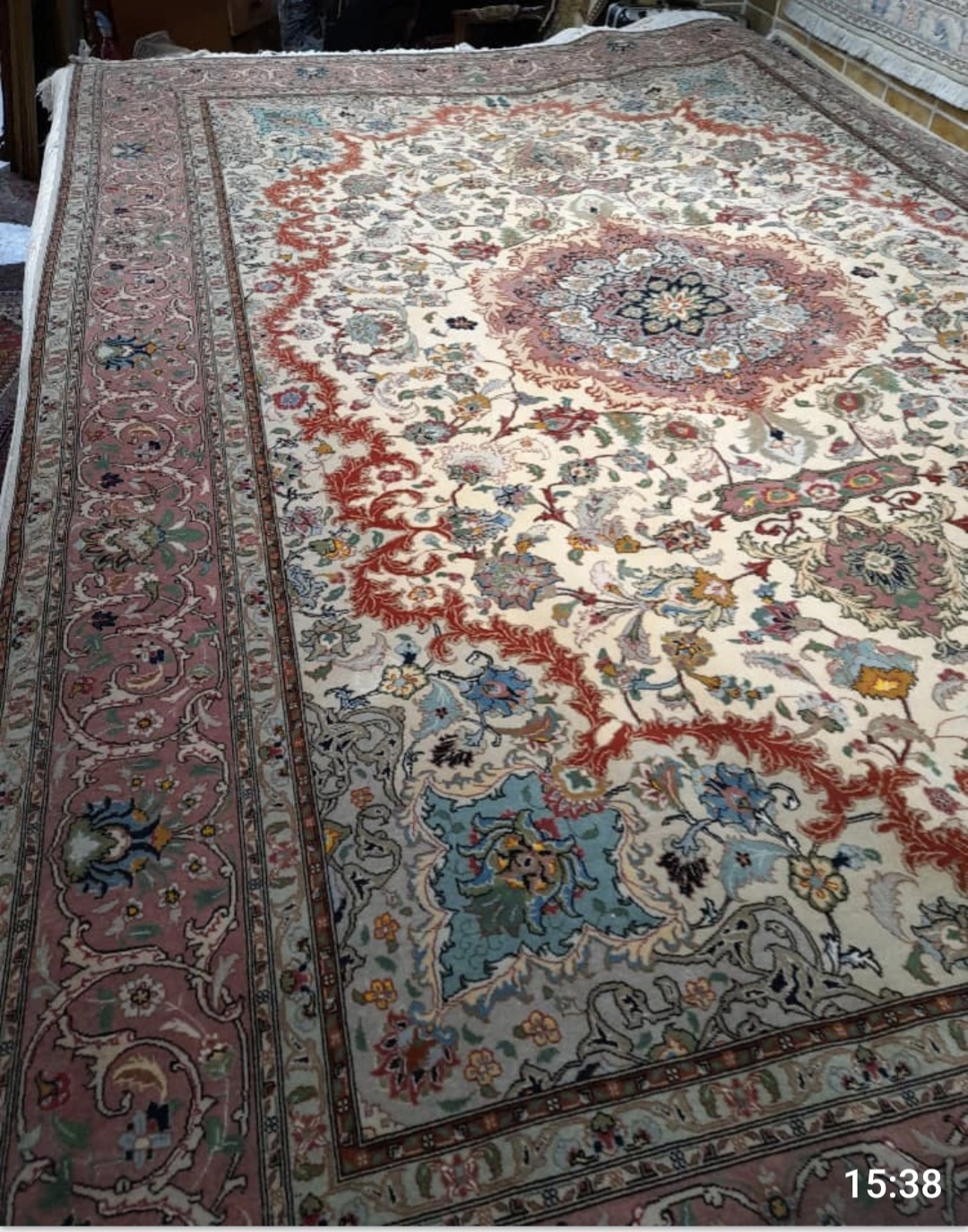 فرش دستباف شش متری تبریز (نقشه لچک ترنج کرم)