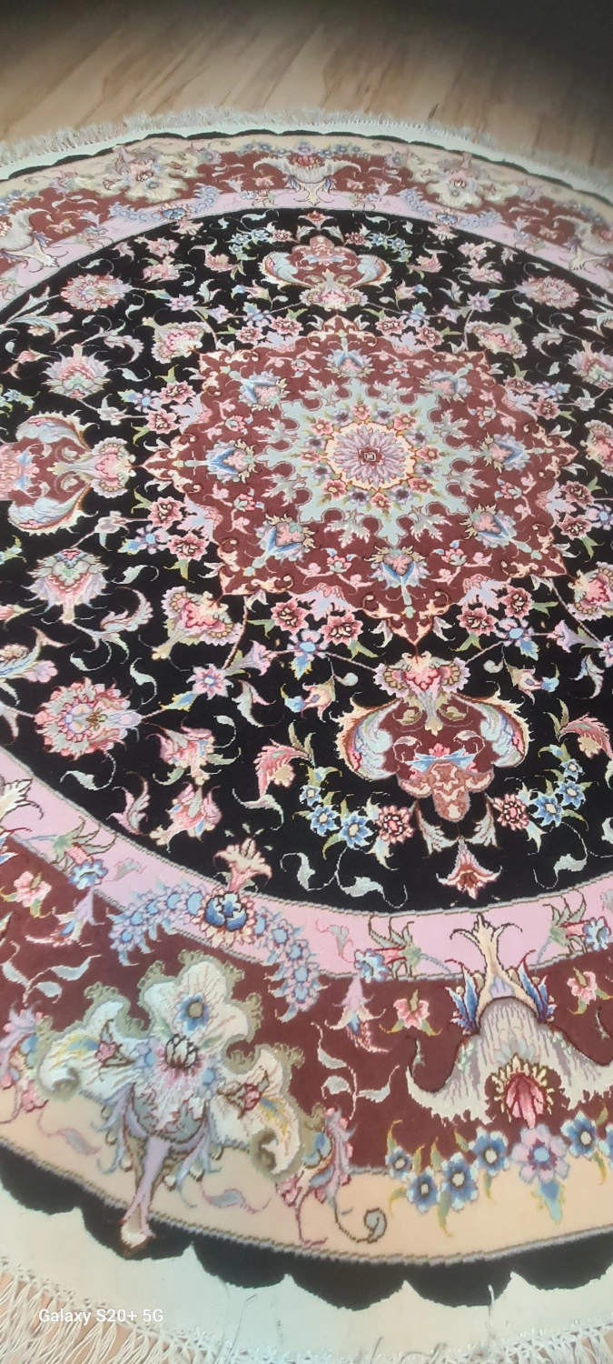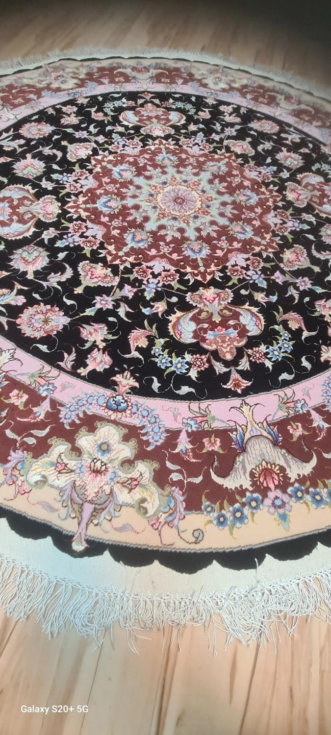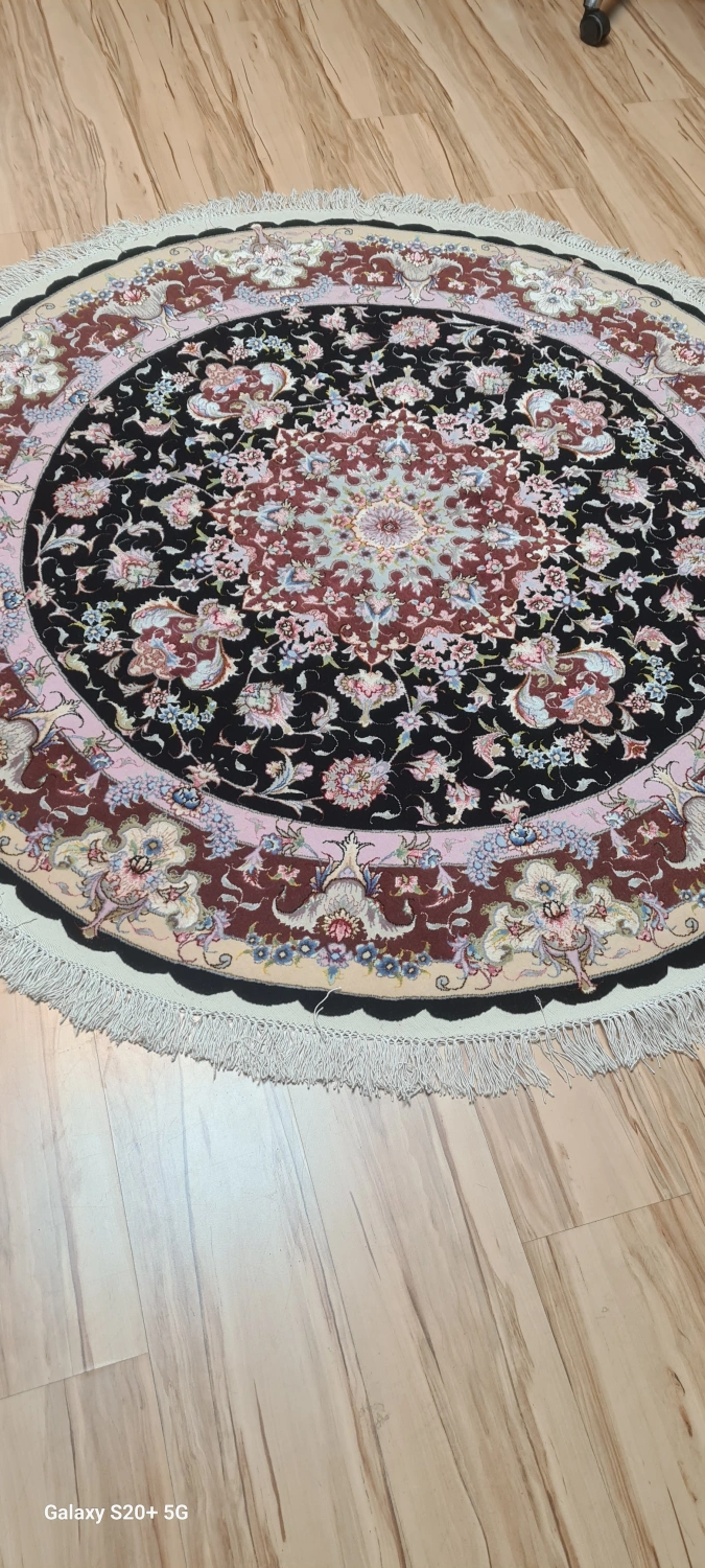 فرش دستباف گرد تبریز (نقشه لچک ترنج مشکی)