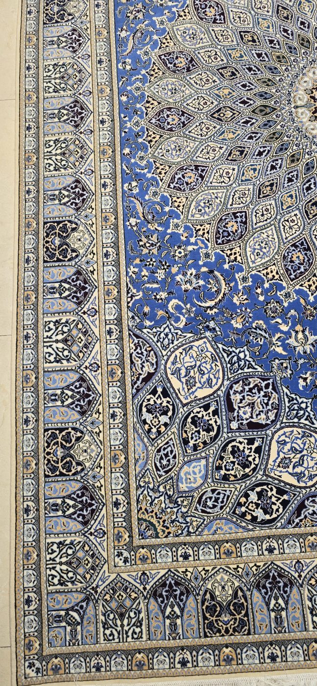فرش دستباف شش متری نایین (نقشه ترنج دار آبی)