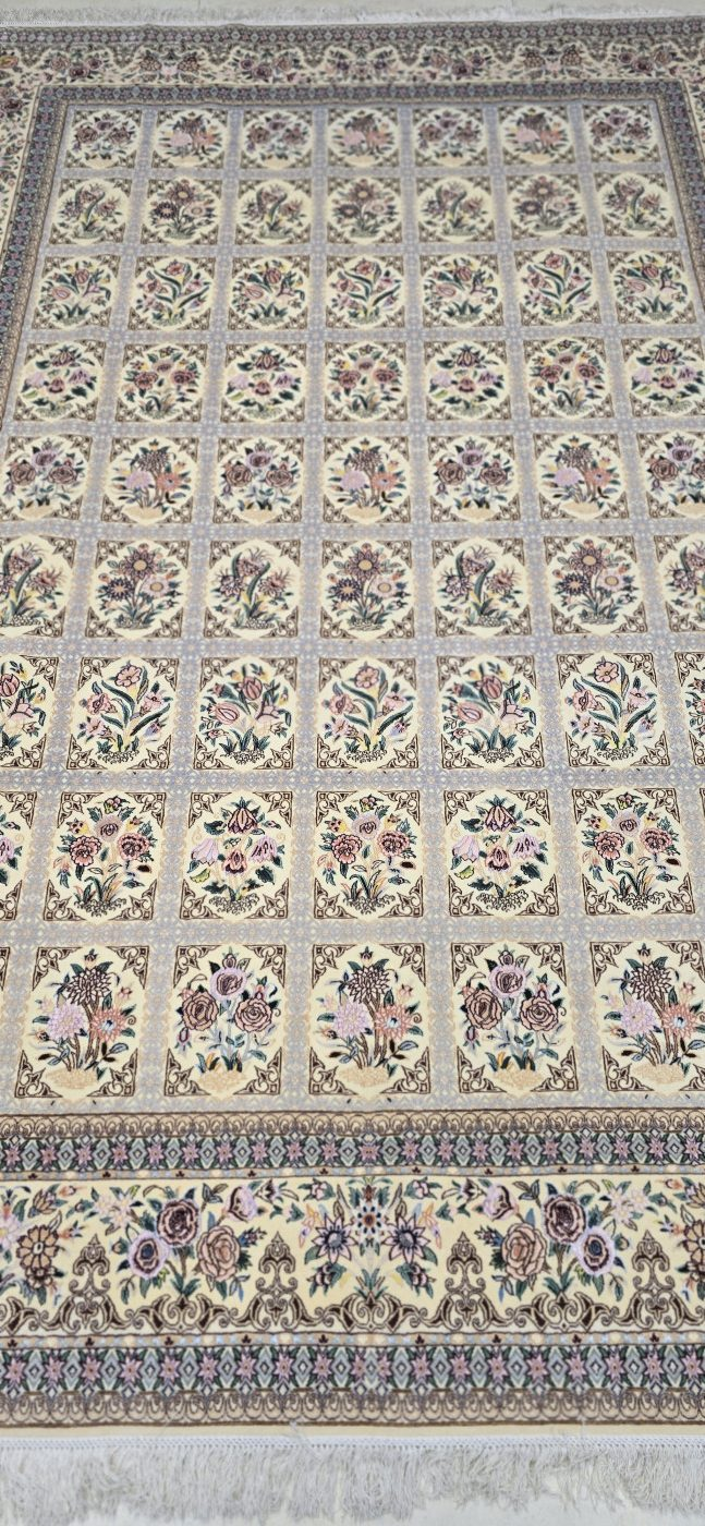 فرش دستباف شش متری اصفهان (نقشه قاب قابی کرم)