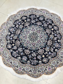 فرش دستباف گرد نایین (نقشه ترنج دار سرمهای)