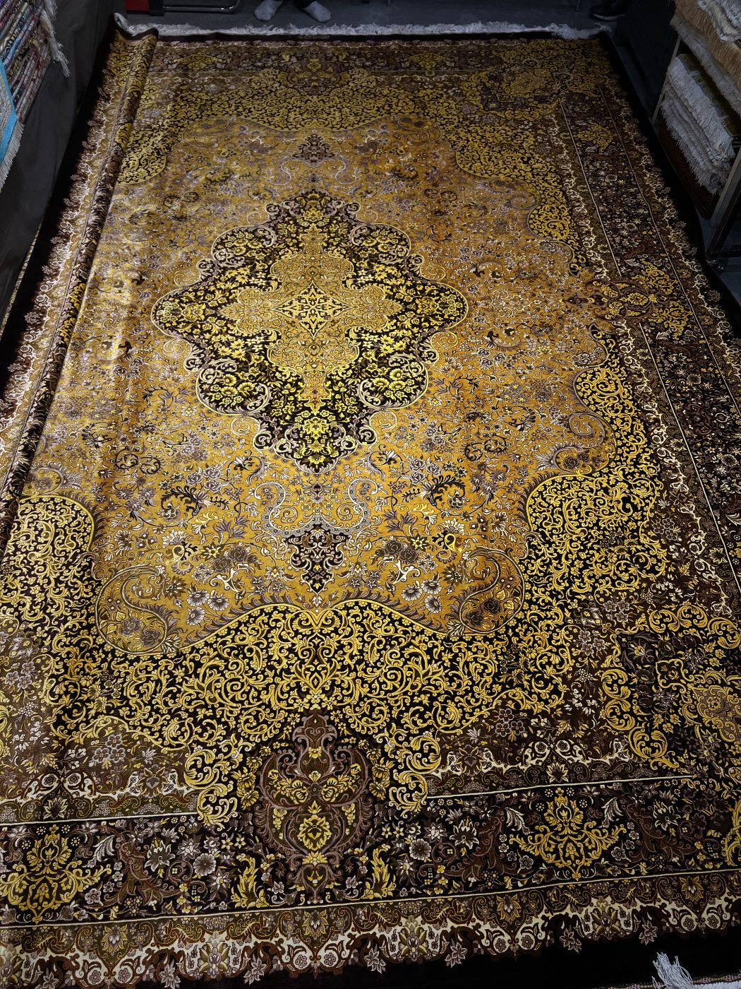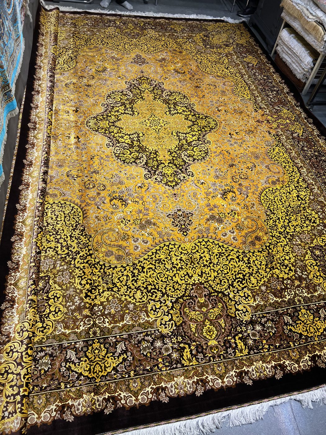 فرش دستباف اعلا دوازده متری تمام ابریشم قم (نقشه لچک ترنج زرد)