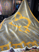 فرش دستباف قالیچه قم تمام ابریشم ظریف بافت (نقشه کف ساده زرد)