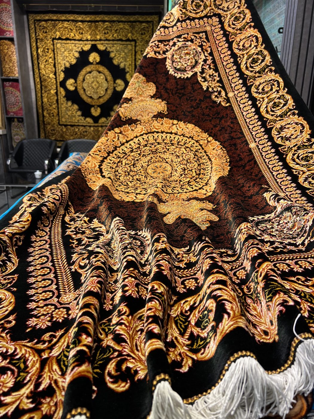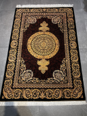 فرش دستباف قالیچه قم (نقشه کف ساده قهوه ای)
