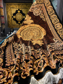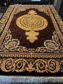 فرش دستباف تمام ابریشم بسیار نفیس قالیچه قم (نقشه کف ساده قهوه ای)
